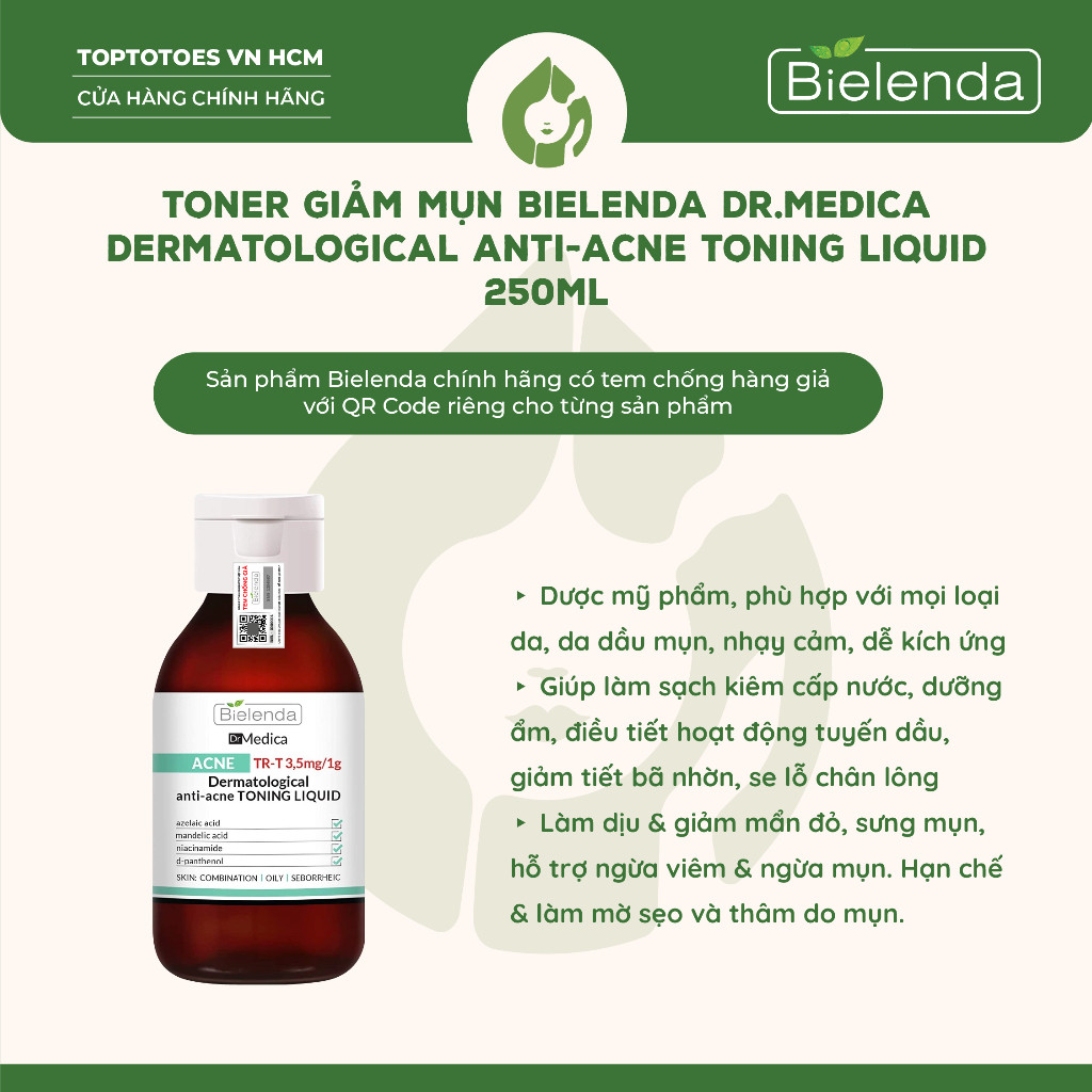 [HÀNG NHẬP KHẨU] Toner Bielenda Dr Medica Anti-acne Dermatological Toning Liquid làm sạch sâu, giảm mụn, kiềm dầ