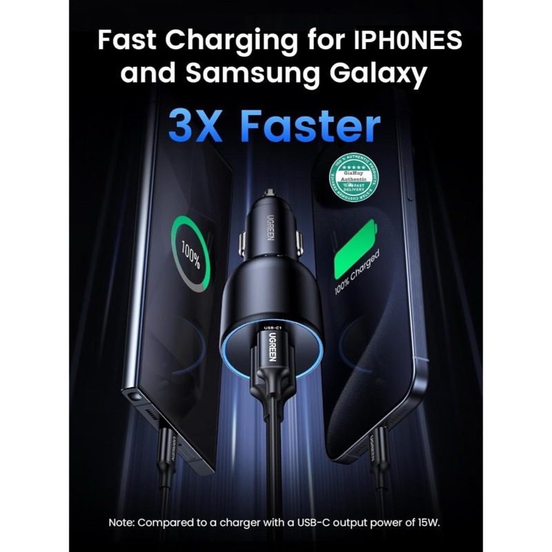 Tẩu sạc ô tô UGREEN CD293 130W 2C-1A (C2 PPS 2.0/ PD 100W, C1 PD 30W & SCP 22.5W)