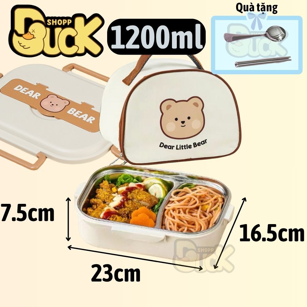 Hộp cơm 2 ngăn giữ nhiệt, thực phẩm văn phòng lúa mạch Dear bear mini inox 304, chống gỉ (Tặng muỗng đũa)