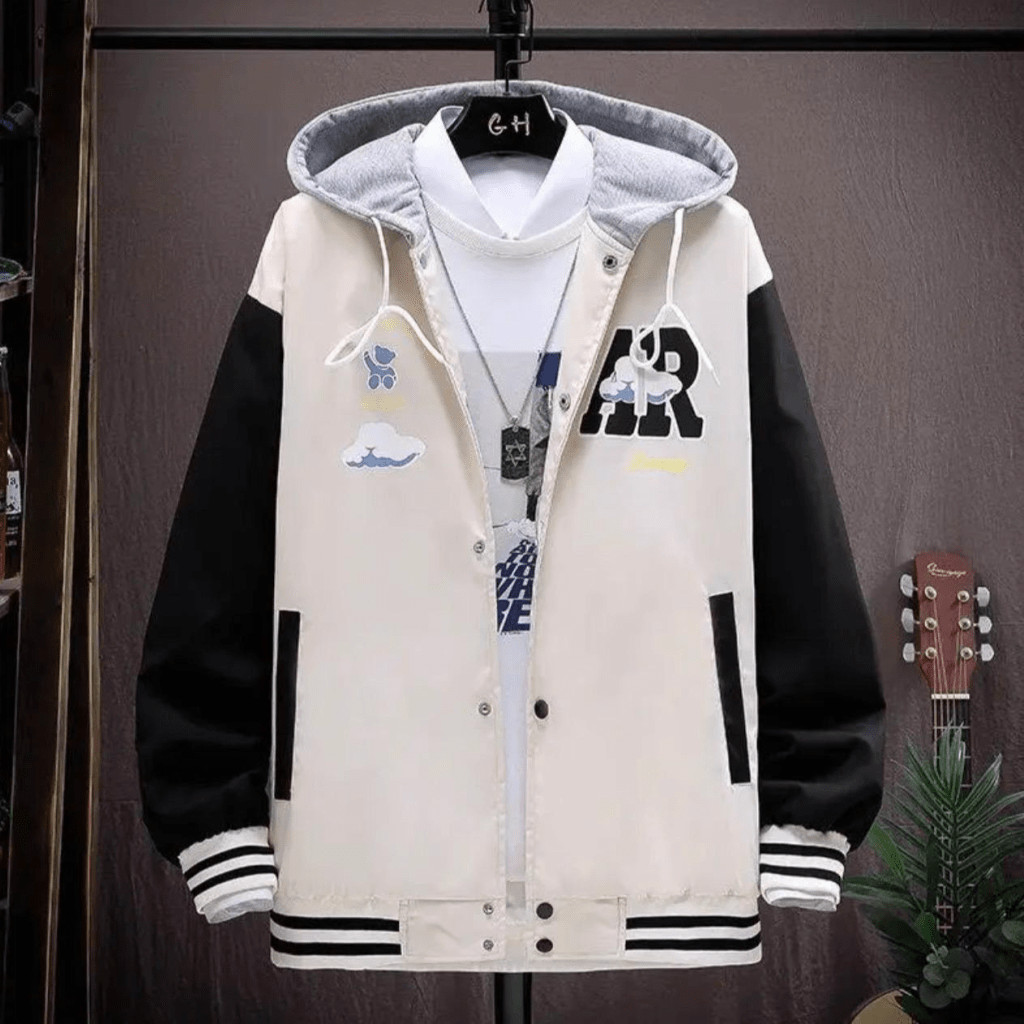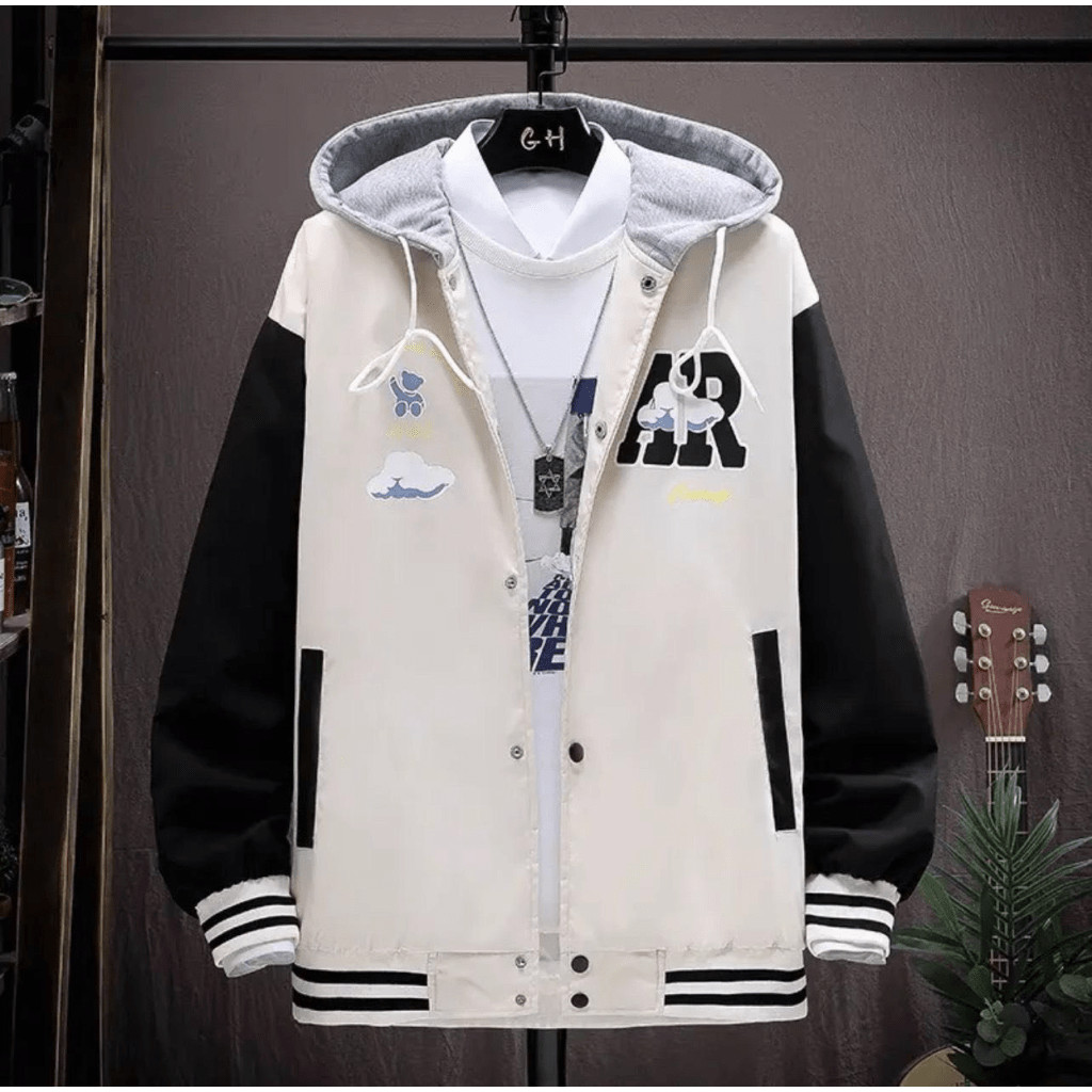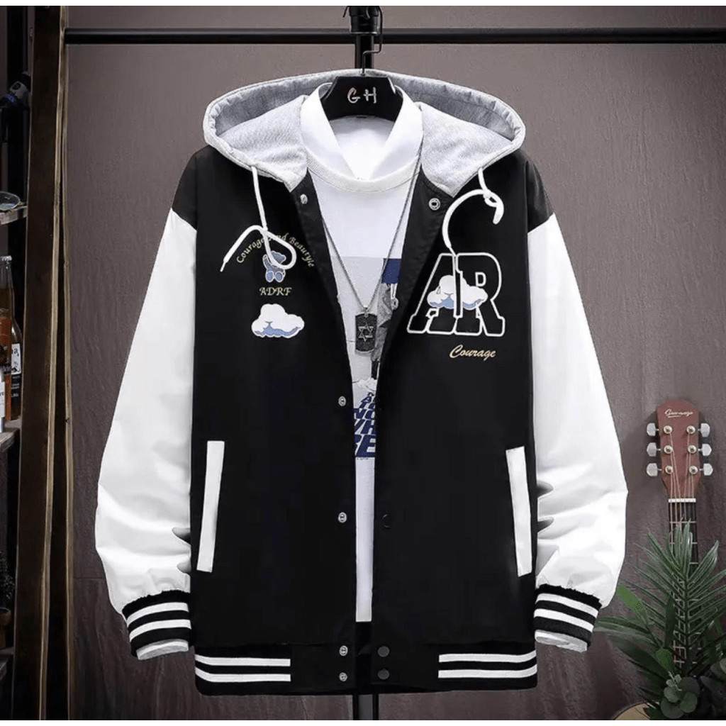 ÁO KHOÁC DÙ BOMBER HAI LỚP KẾT HỢP NÚT BẤM PHỐI NÓN NỈ DÀY DẶN IN CHỮ AR PHONG CÁCH HÀN XẺN NĂNG ĐỘNG TRẺ TRUNG Nam Mens