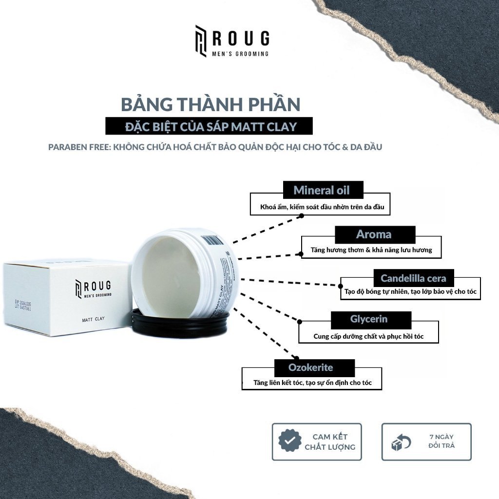 ROUG | Sáp vuốt tóc, Gôm xịt tóc Roug Matt Clay, Matte Clay, Bọt tạo phồng Roug, Xịt tạo phồng|