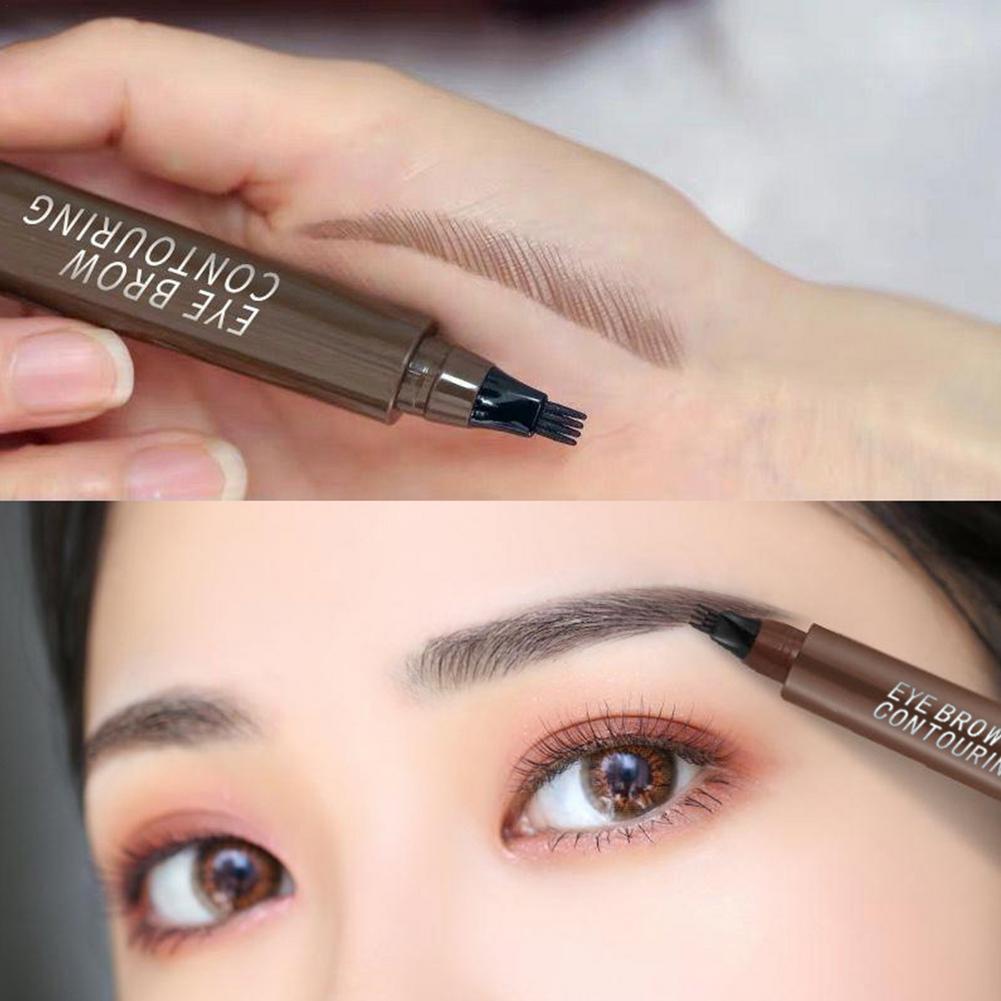 Bút chì kẻ mày bốn lỗ dạng lỏng Đầu nĩa dài tự nhiên không thấm nước