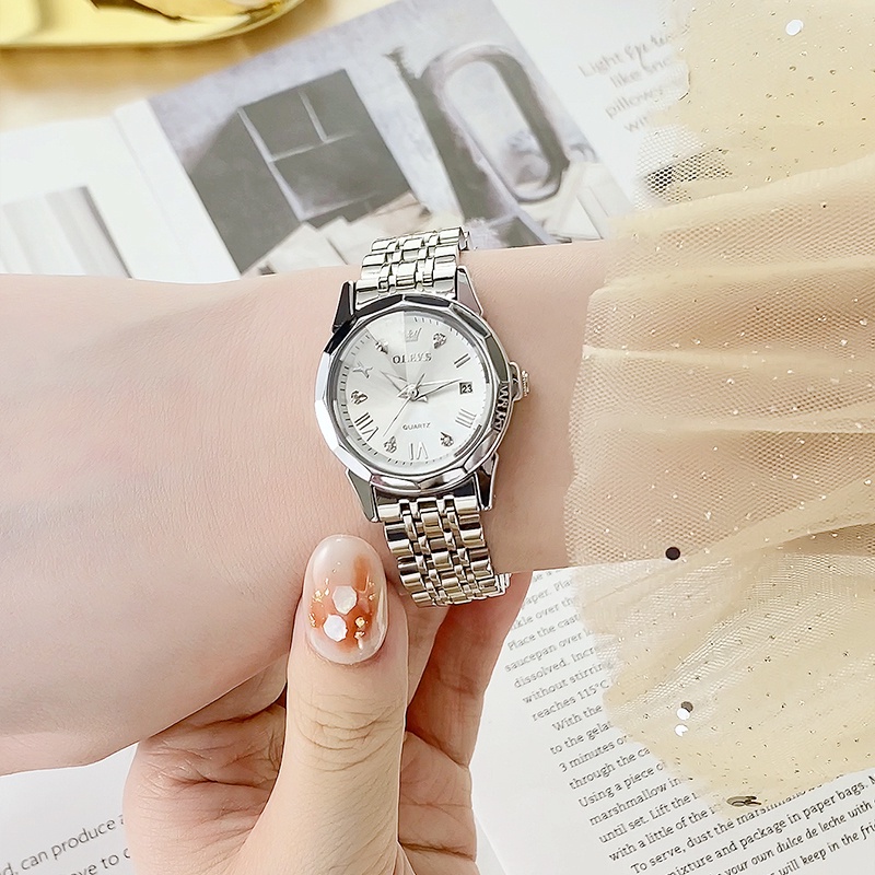 Đồng hồ nữ dây thép không gỉ, FullBox chính hãng Olevs, mặt kính chống trầy xước, chống nước 3ATM, mặt dạ quang ban đêm.