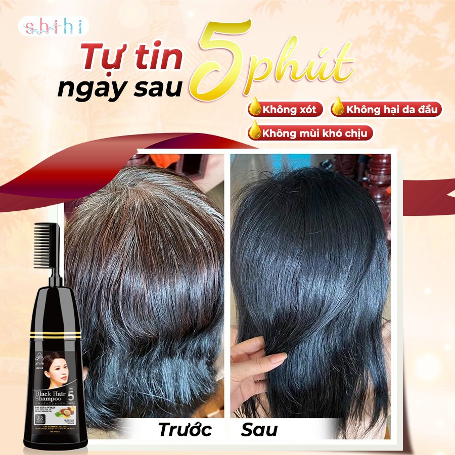 Dầu Gội Phủ Bạc Thảo Dược Hàn Quốc SHIHI, Gội Là Đen Nhanh, Bền Màu, Không Kích Ứng, An Toàn Da Đầu