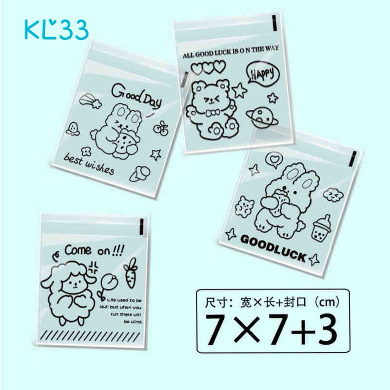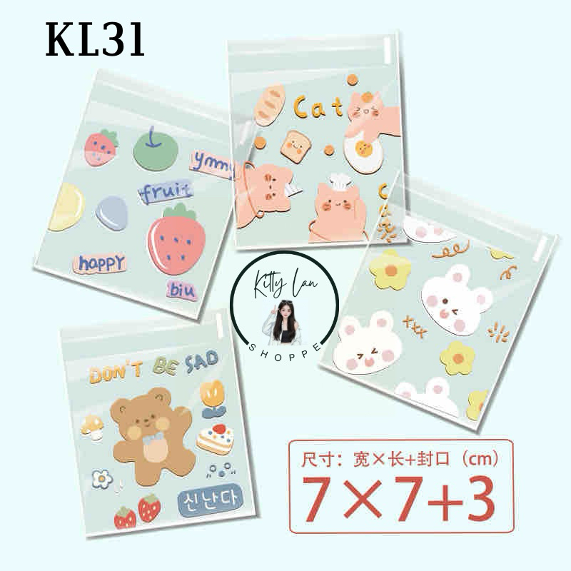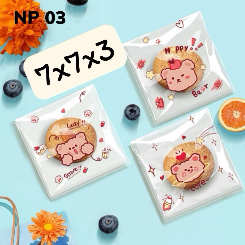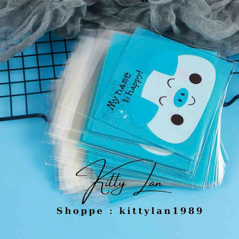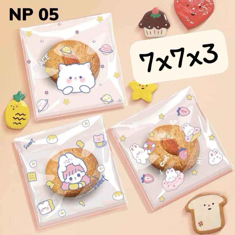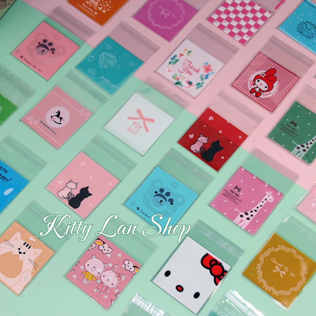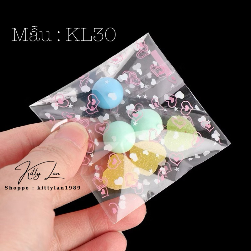 (Shop Giao từ 2 sản phẩm)50 Túi dán nilong họa tiết gói bánh kẹo Size 7x7+3cm nắp