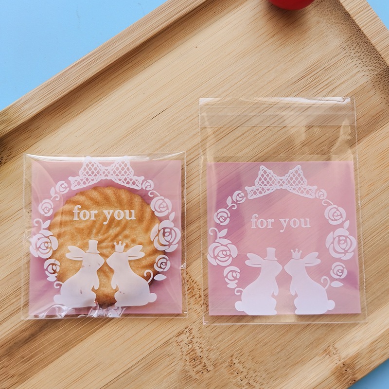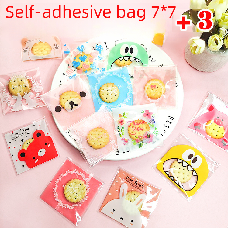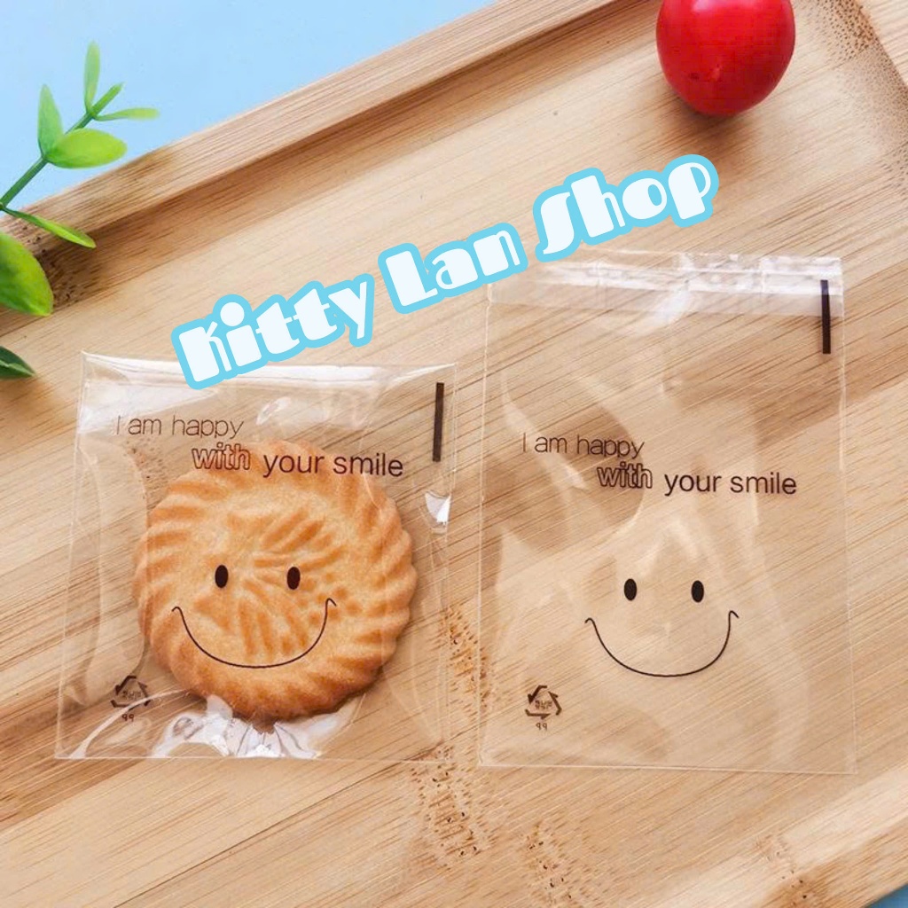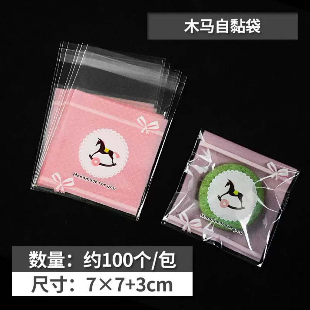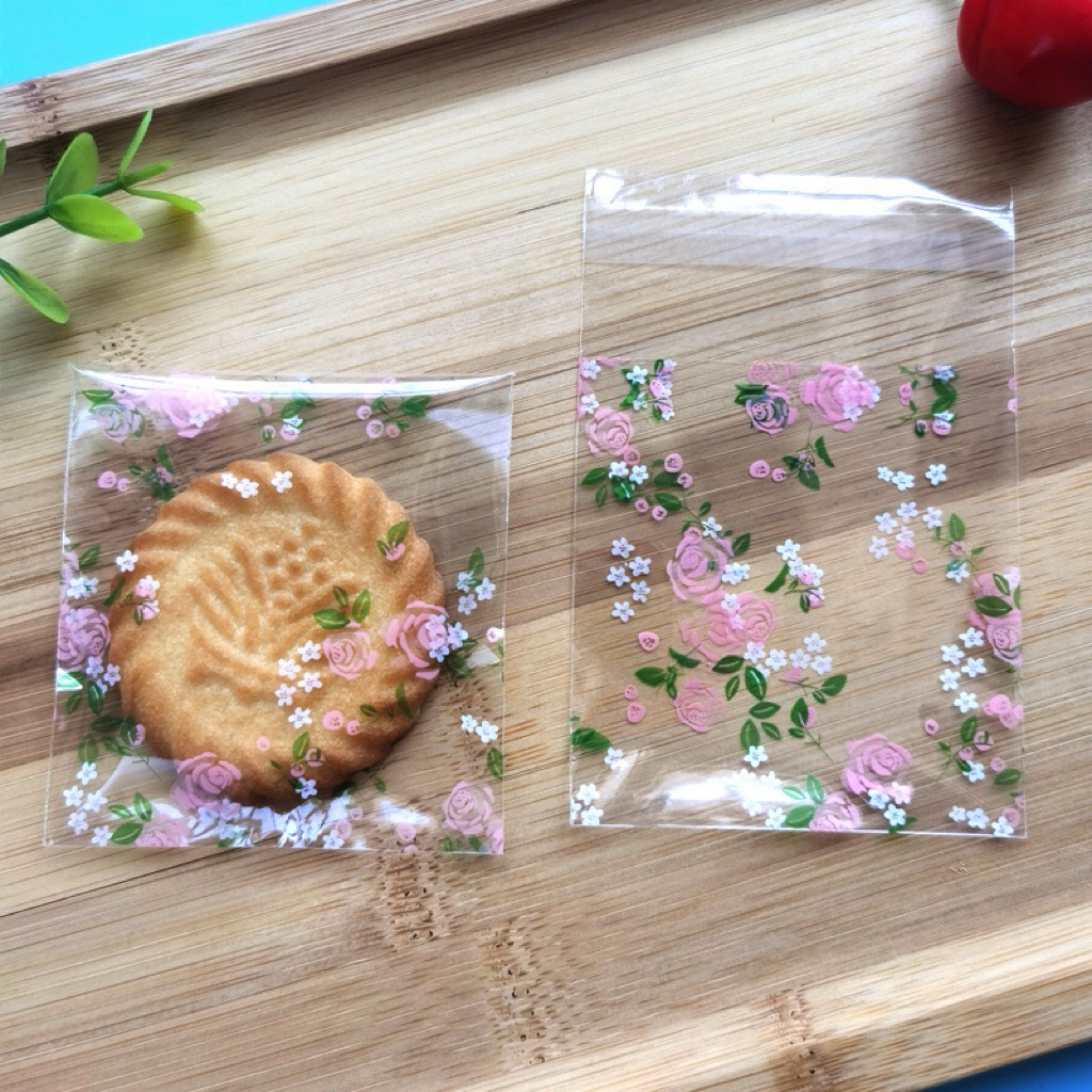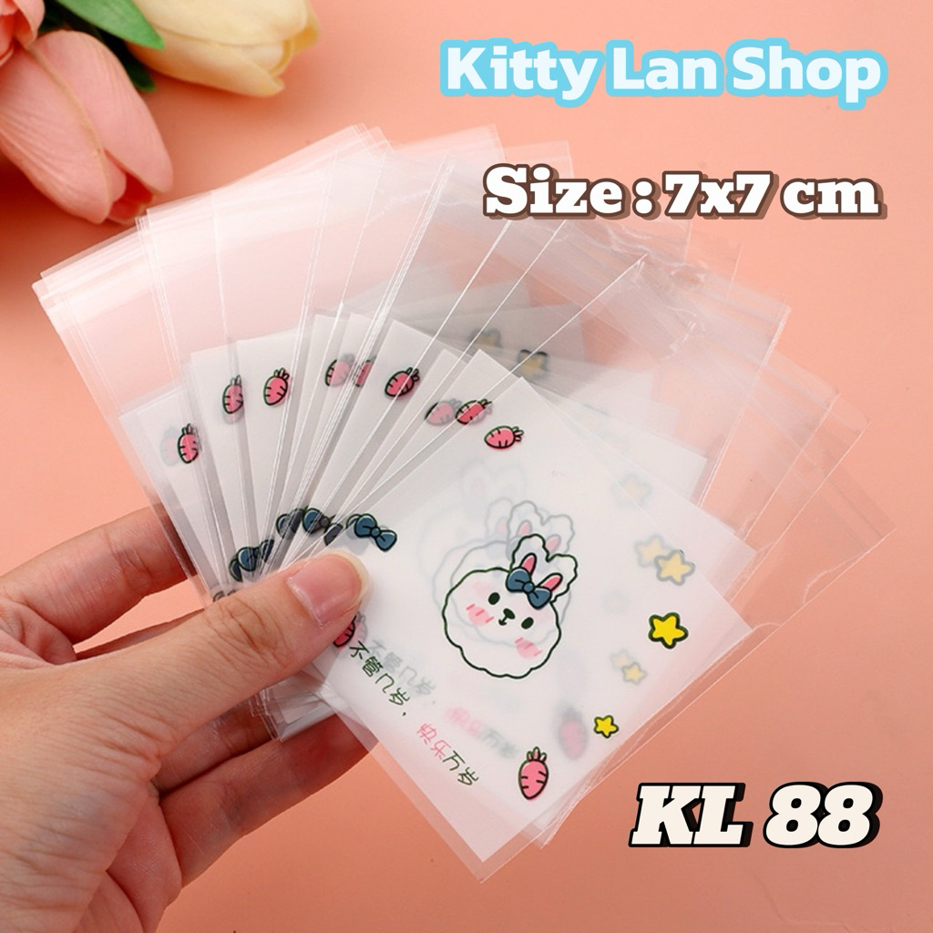 (Shop Giao từ 2 sản phẩm)50 Túi dán nilong họa tiết gói bánh kẹo Size 7x7+3cm nắp