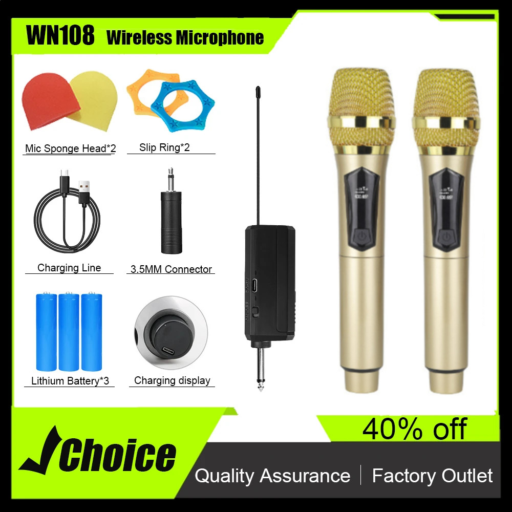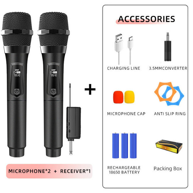 Micro không Dây uhf karaoke micrô động cầm tay kép với bộ thu có thể sạc lại cho tiệc cưới câu lạc bộ nhà thờ phát biểu