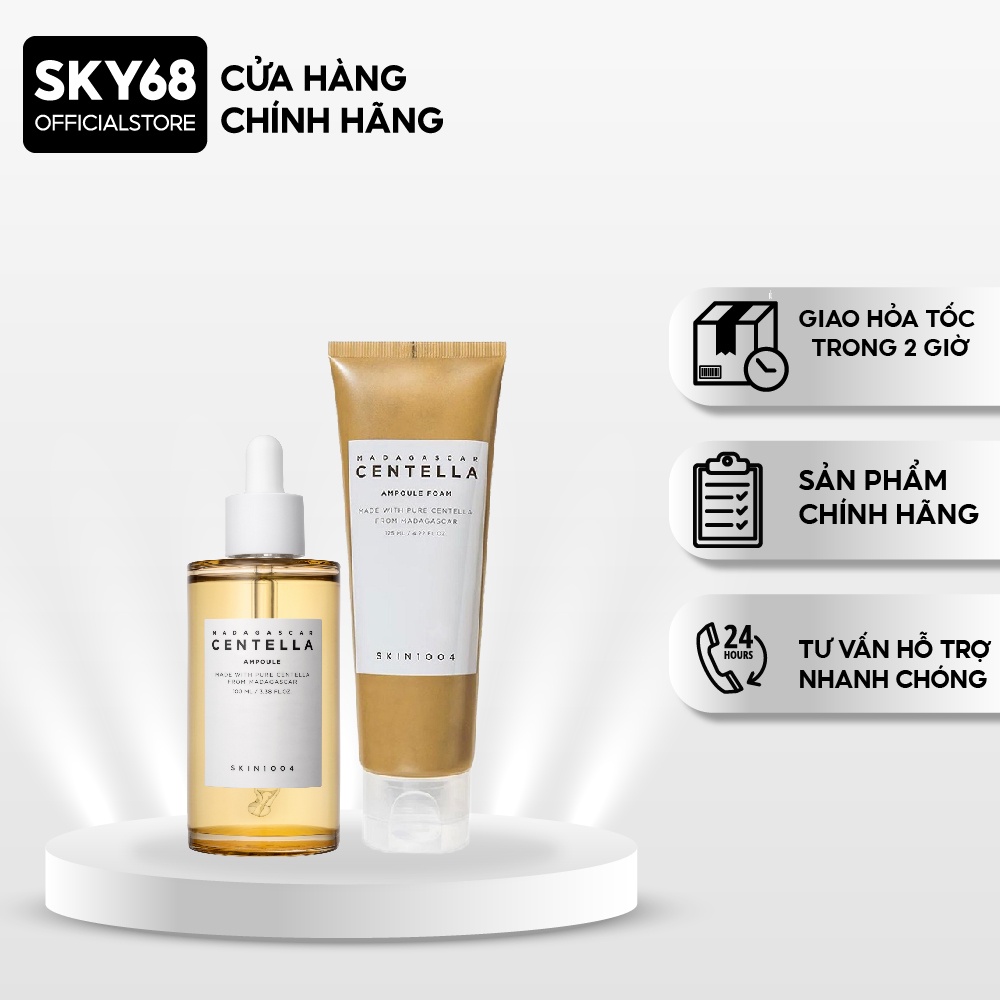 Combo Sữa Rửa Mặt và Tinh Chất Rau Má Giảm Mụn, Dưỡng Trắng Da và Phục Hồi Da Skin1004 Madagascar Centella