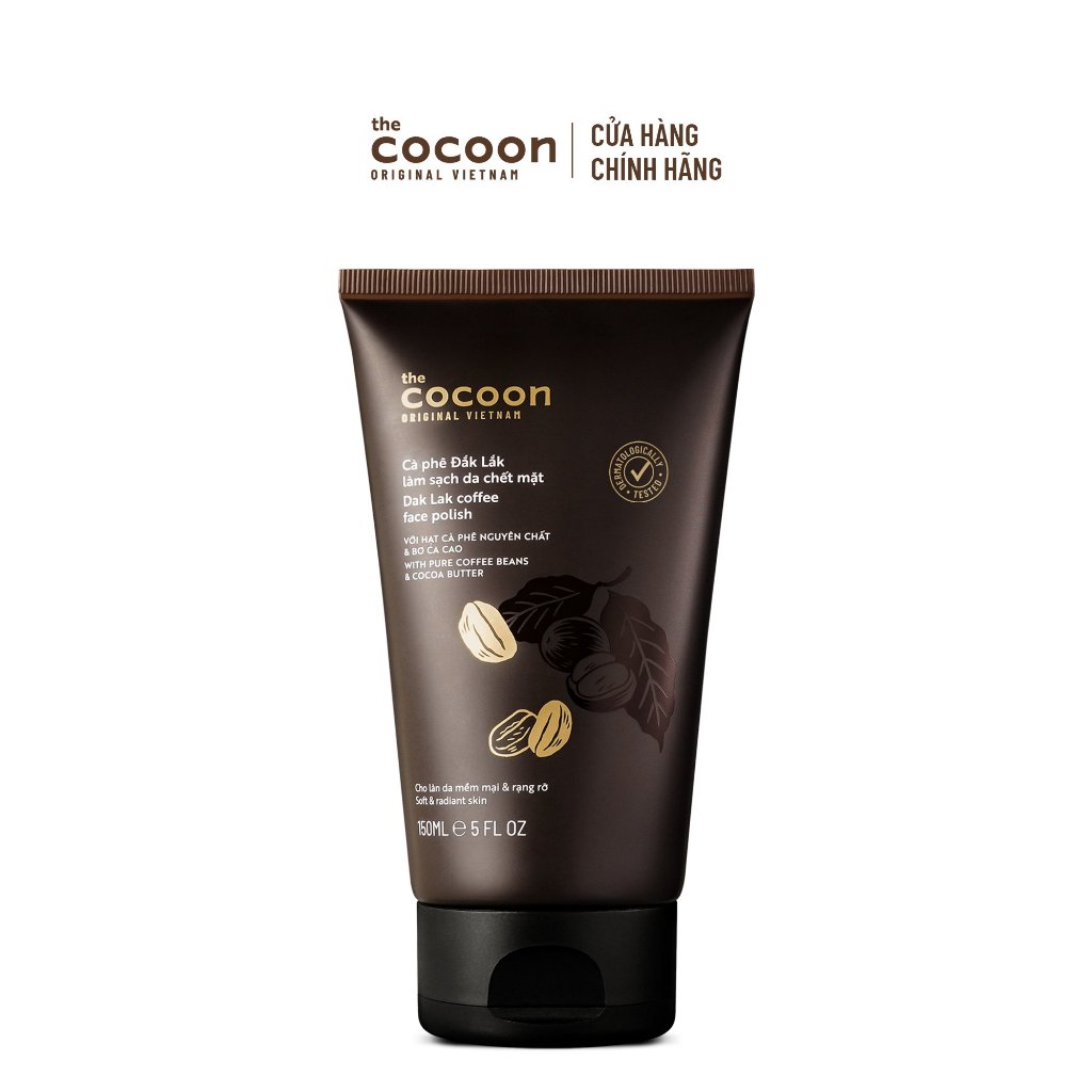 [FS] Cà phê Đắk Lắk làm sạch da chết mặt 150ML Tặng 1 Gel tắm đường thốt nốt 50ml + 1 Tẩy trang bí đao 50ml Cocoon