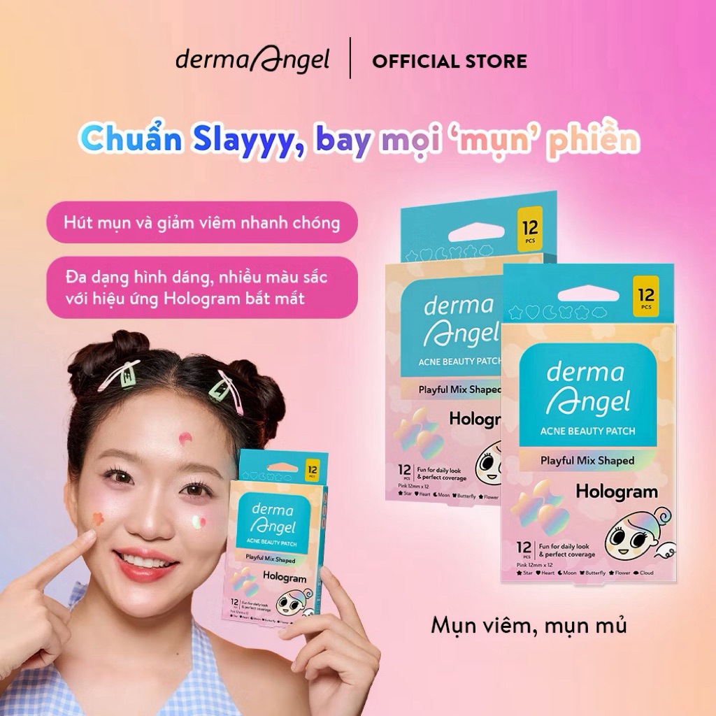 (chọn tại phân loại) Miếng dán mụn siêu mỏng, ngừa mụn, giảm sưng viêm mụn Derma Angel Acne Patch