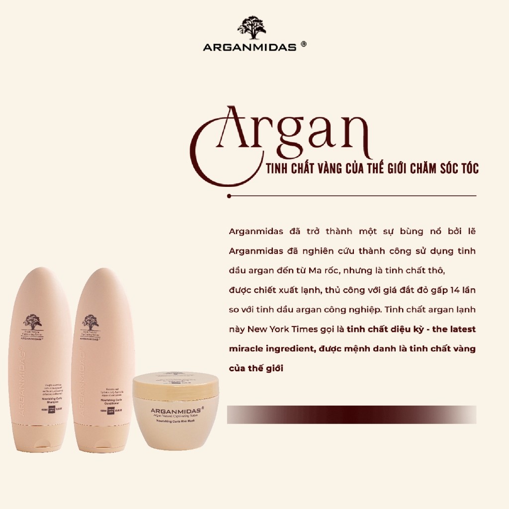 Combo dầu gội xả nuôi dưỡng tóc uốn xoăn Arganmidas (450ml) + Mặt nạ tóc nuôi dưỡng tóc uốn xoăn Arganmidas (300ml)