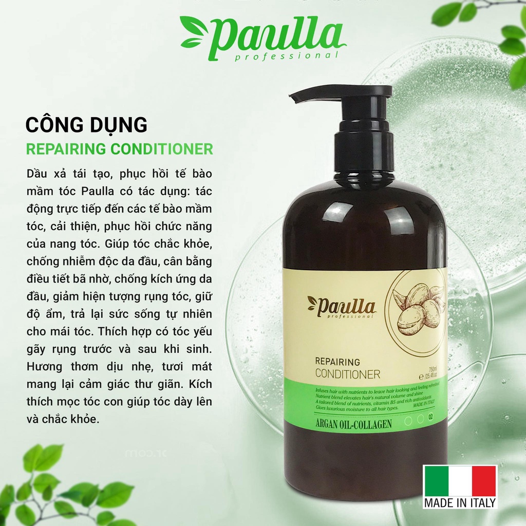 Dầu Gội PAULLA Tái Tạo Và Phục Hồi Tế Bào Mầm Tóc chống gãy rụng kích thích mọc tóc phục hồi tóc kho sơ cặp gội xả 750ml