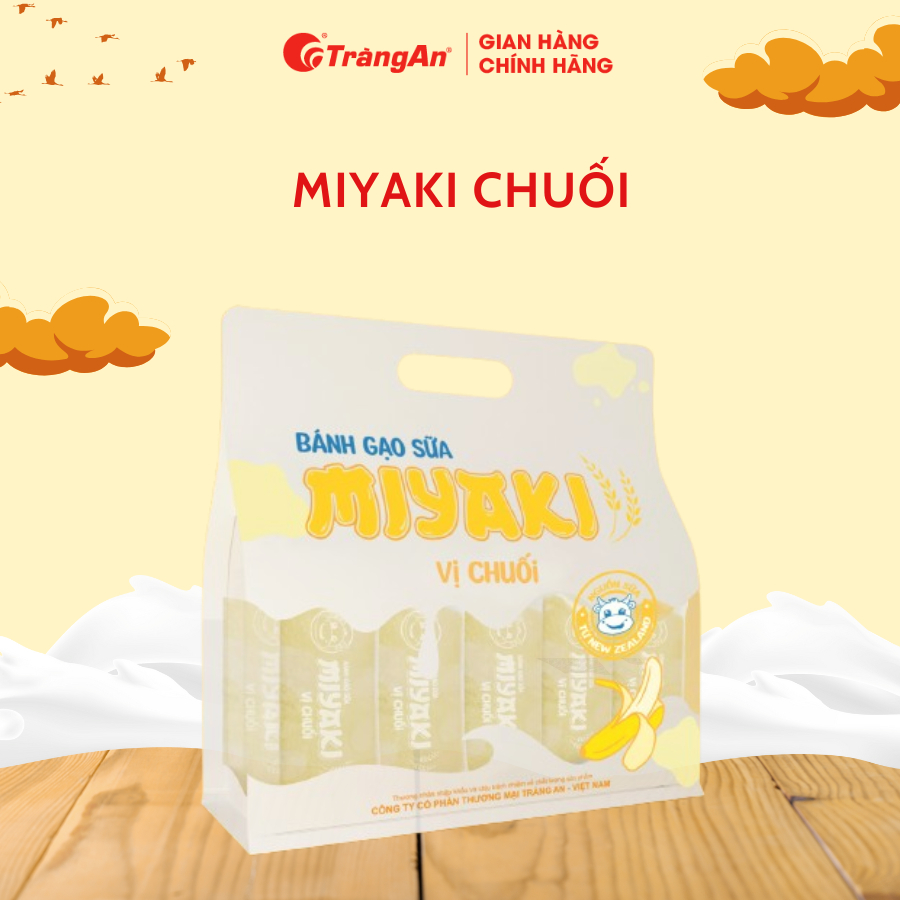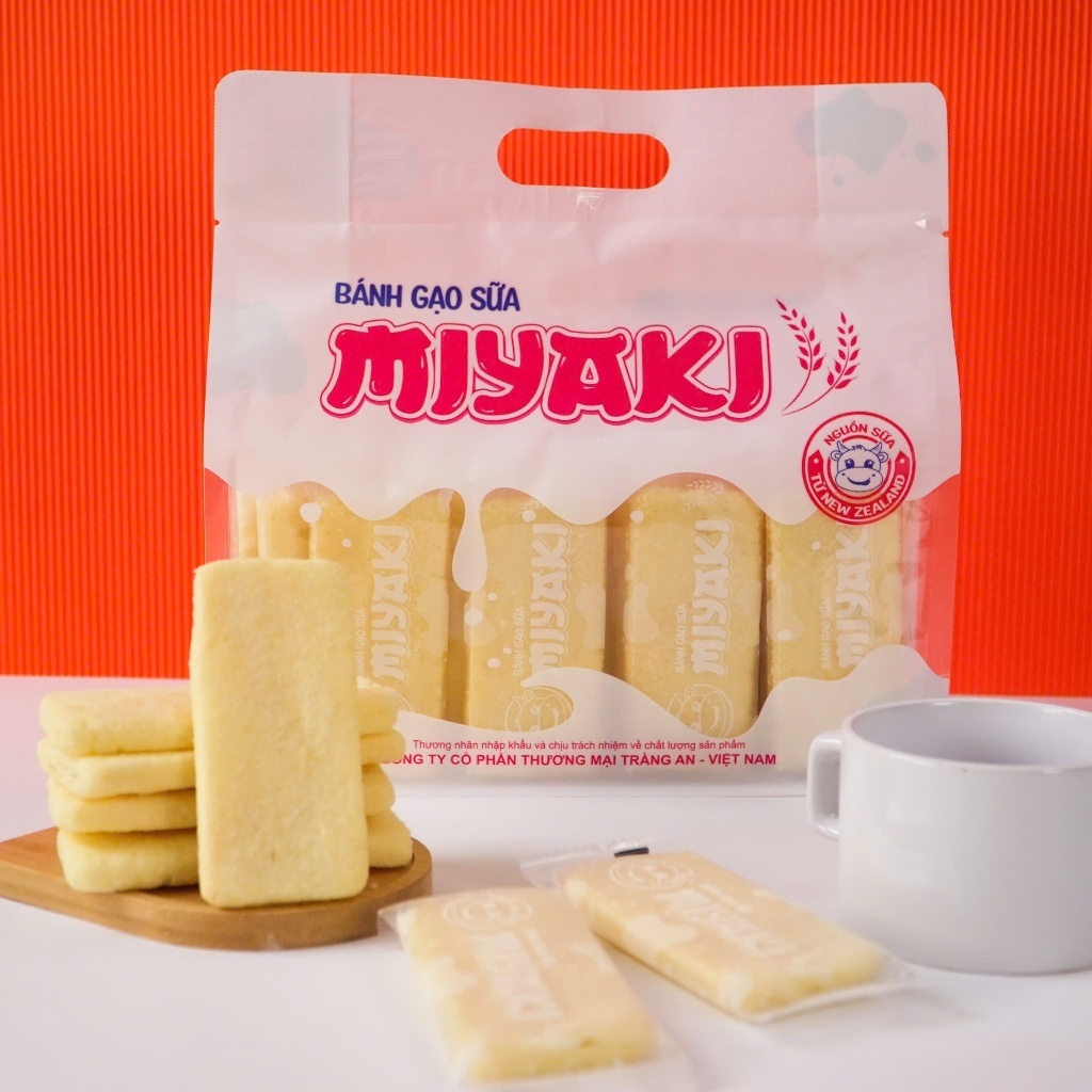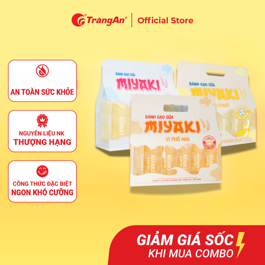 Bánh Gạo Sữa Miyaki Tràng An không chiên rán an toàn thơm ngon dinh dưỡng - túi 26 gói (240g)