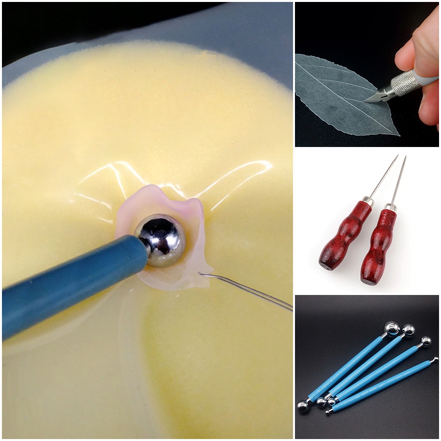 Bộ cây tròn pill bar dao khắc tấm lót silicone tạo hình plastic shrink cánh hoa nhựa co nhiệt làm trâm làm trang sức