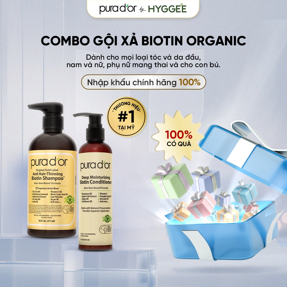 Combo Gội Xả Pura D’or Biotin Gold Label – Giảm Rụng, Nuôi Dưỡng Tóc Khỏe
