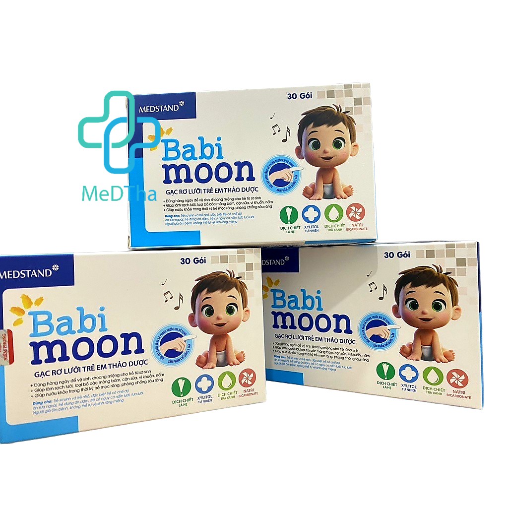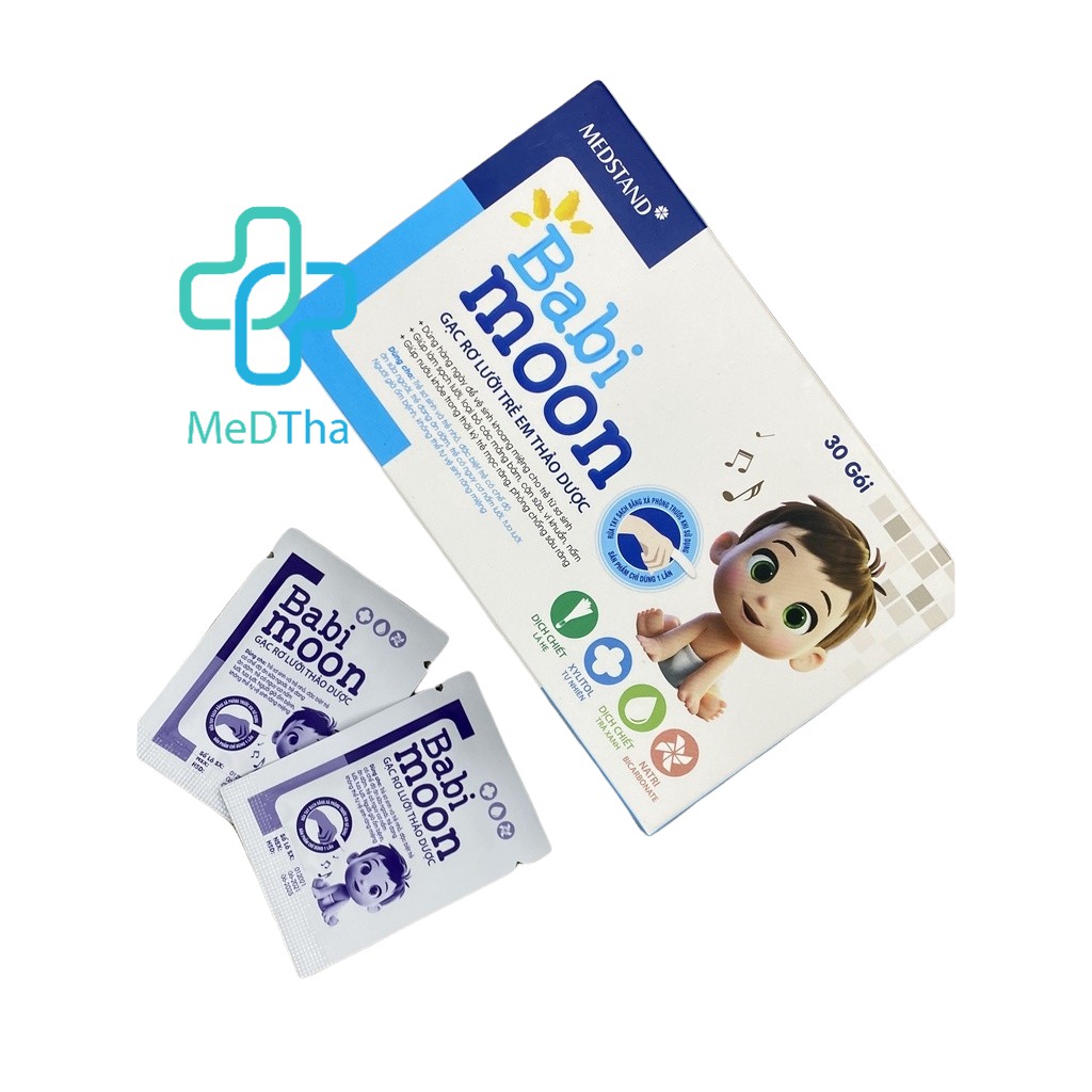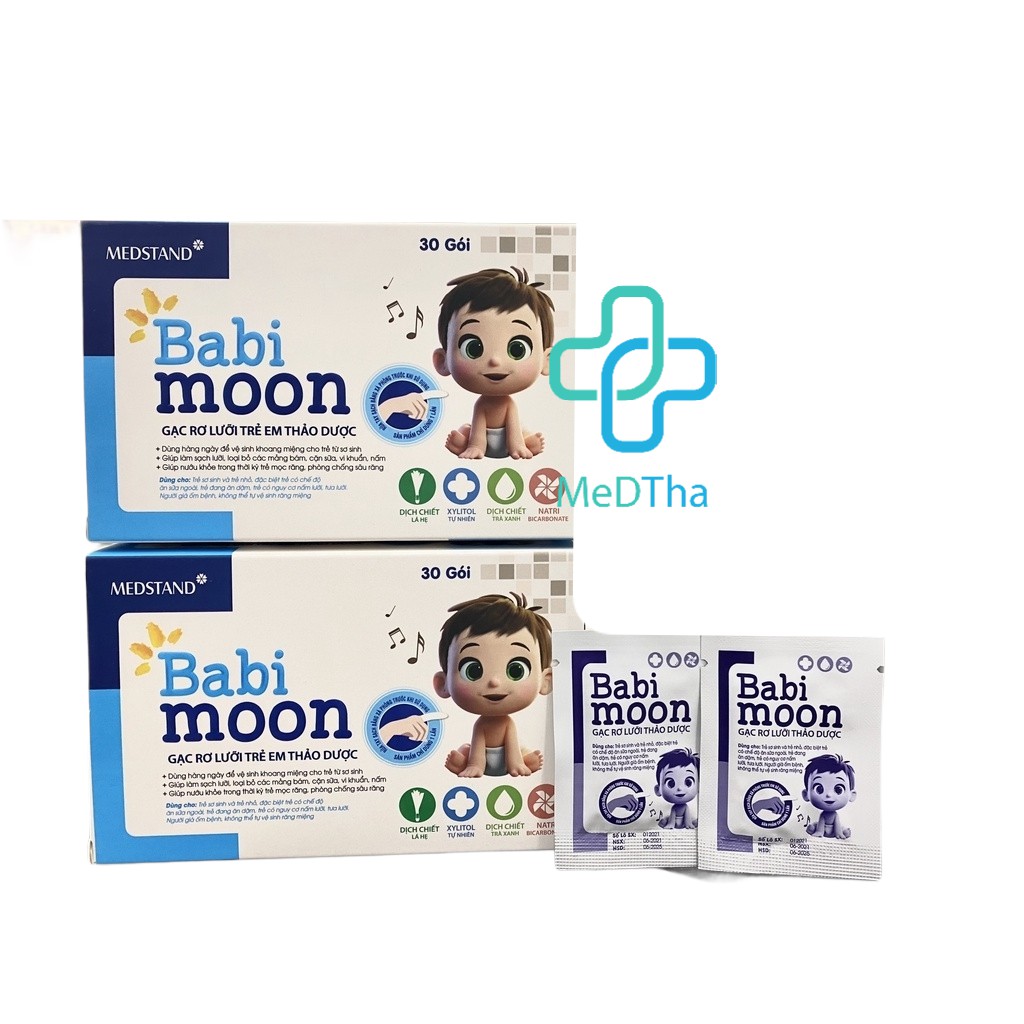 Gạc Rơ Lưỡi Trẻ Em Từ Thảo Dược Babi Moon - Vệ sinh miệng cho trẻ nhỏ, trẻ sơ sinh an toàn tiện lợi (Hộp 30 Gói)