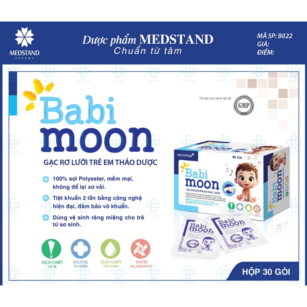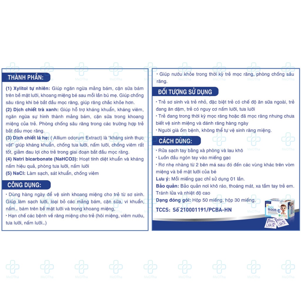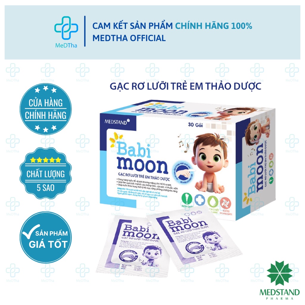 Gạc Rơ Lưỡi Trẻ Em Từ Thảo Dược Babi Moon - Vệ sinh miệng cho trẻ nhỏ, trẻ sơ sinh an toàn tiện lợi (Hộp 30 Gói)