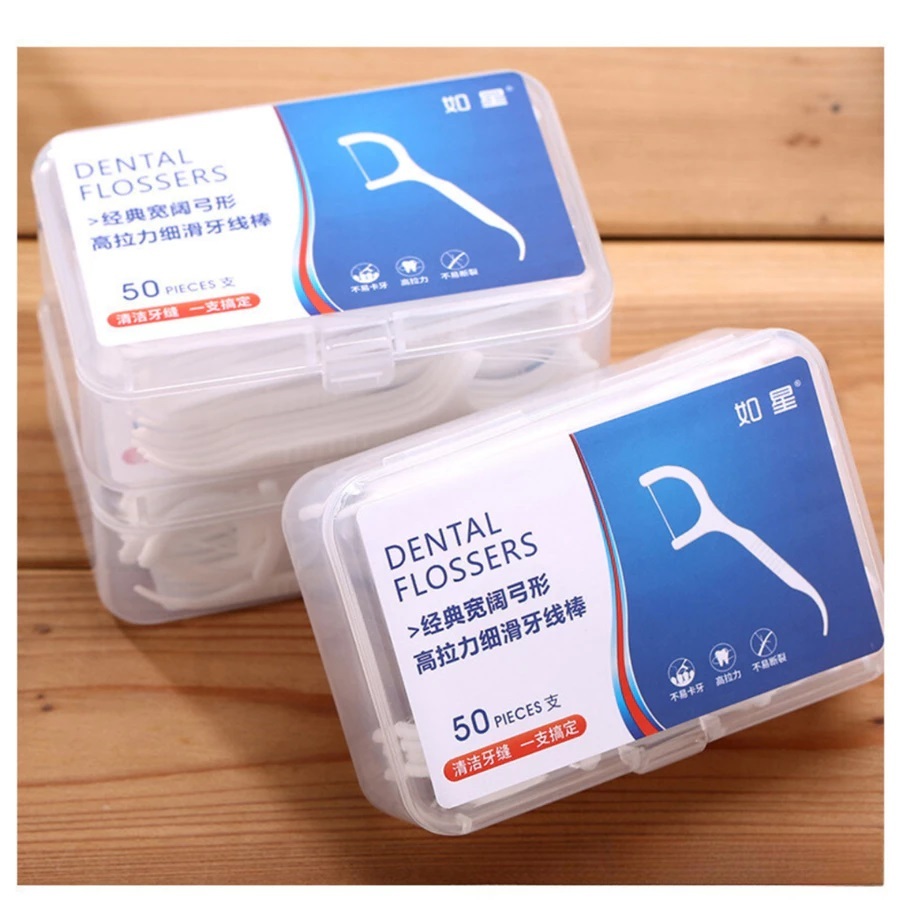 [Hộp 50 cây] Tăm chỉ nha khoa Dental Flossers làm sạch răng, loại bỏ mảng bám, ngừa sâu răng