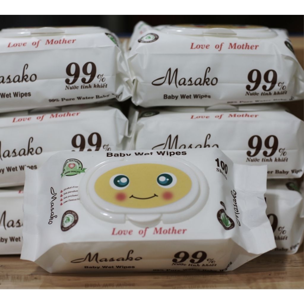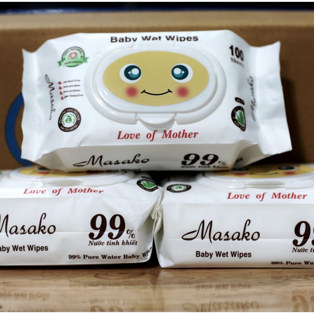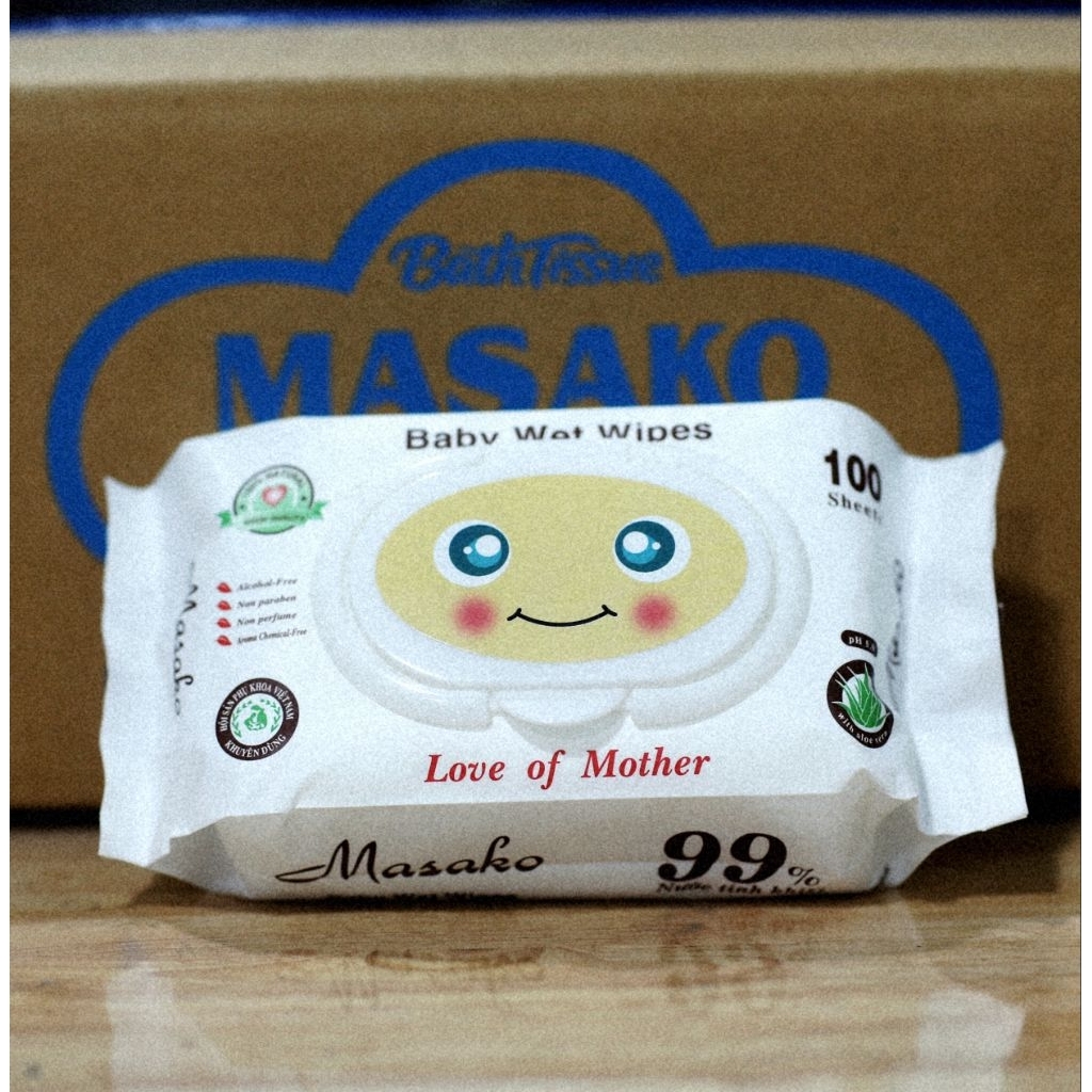 10 gói khăn giấy Ướt em bé Masako 100g. Không Cồn, PH 5.0. an toàn cho da.