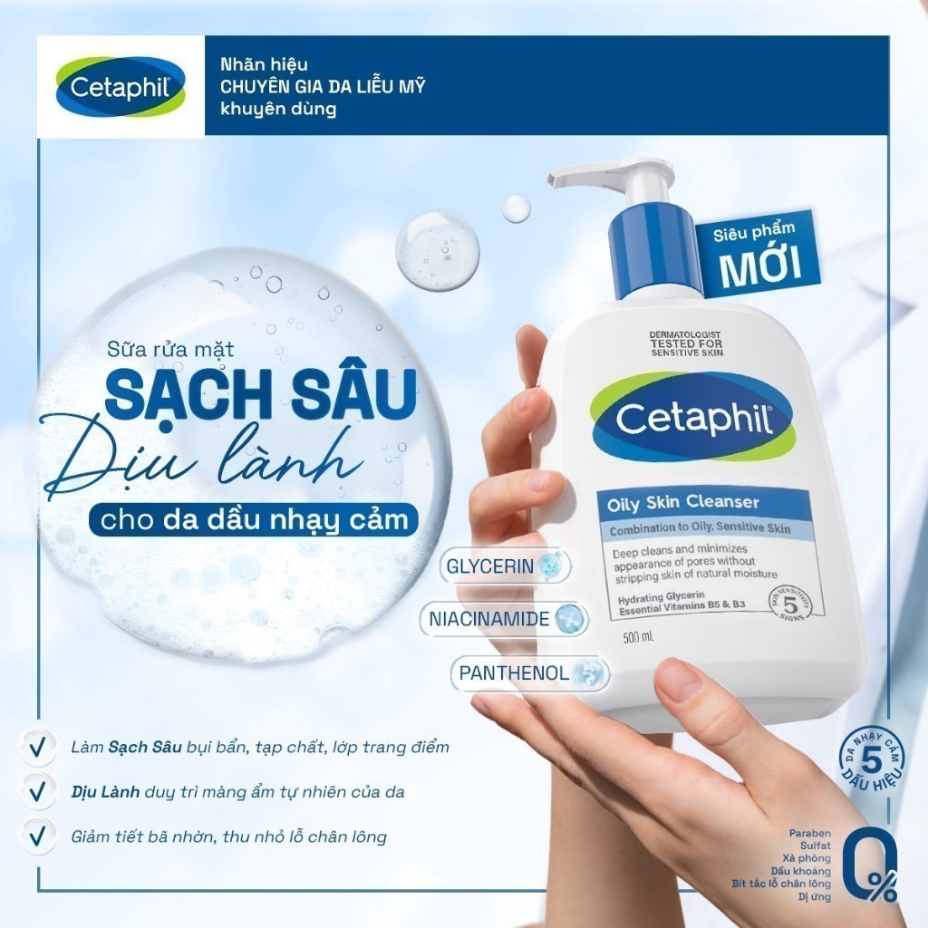 [MEGA 4.4|12H-13H] Sữa Rửa Mặt Cetaphil Dịu Lành Cho Da Dầu Nhạy Cảm Oily Skin Cleanser Hasaki Chính Hãng