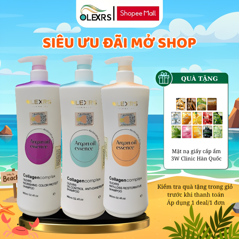 (Mẫu mới 2024) Cặp Dầu Gội Xả Olexrs+HairSalon Argan Oil Collagen Chính Hãng 500ml và 960ml