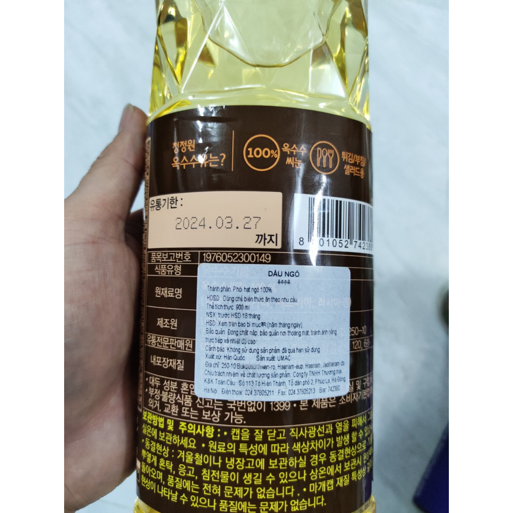 Dầu ngô (dầu bắp) hàn quốc 900ml - 옥수수유