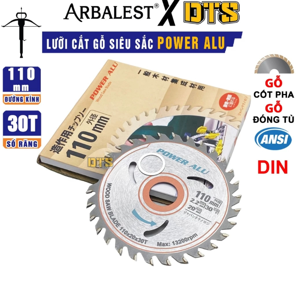 Lưỡi cưa gỗ 110mm siêu sắc Nhật POWER ALU | Lưỡi cắt gỗ hợp kim 30 răng WOOD SAW BLADE 110x20x30T