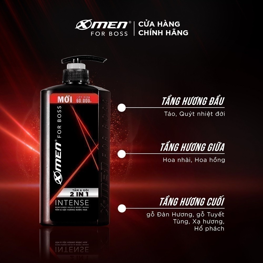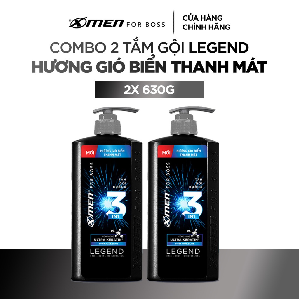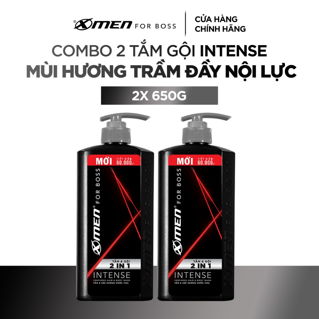Combo 2 Tắm Gội X-Men for Boss 630g 650g/chai Luxury/Intense/Legend, Hương Nước Hoa Châu Âu
