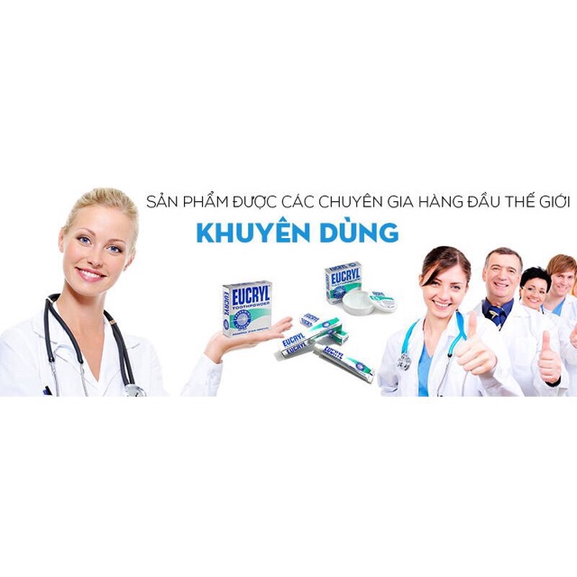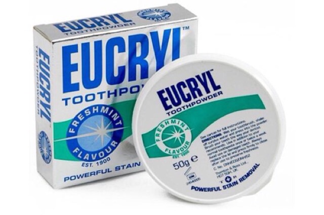 Combo BỘT + KEM đánh tẩy trắng răng Eucryl Toothpowder Freshmint Flavour Anh