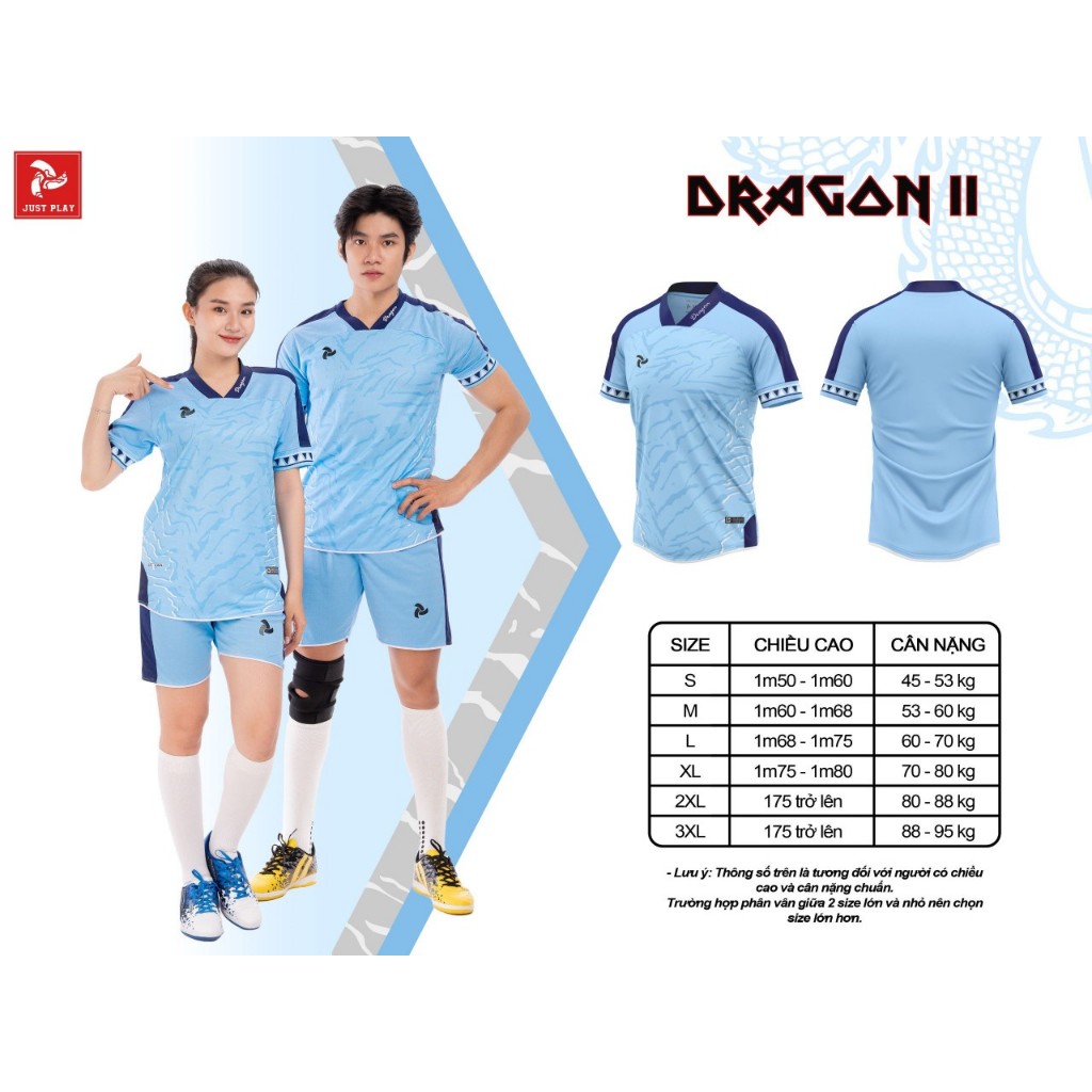 [BỔ SUNG 3XL] Bộ Quần Áo Bóng Đá Thiết Kế Justplay Dragon 2, Mẫu Unisex, Nam Nữ Mặc Đều Đẹp