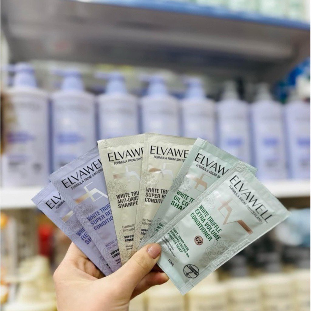 Mini dùng thử Dầu gội xả Elvawell gói 10ml mang đi du lịch, phục hồi khô xơ hư tổn, giảm bết, gàu