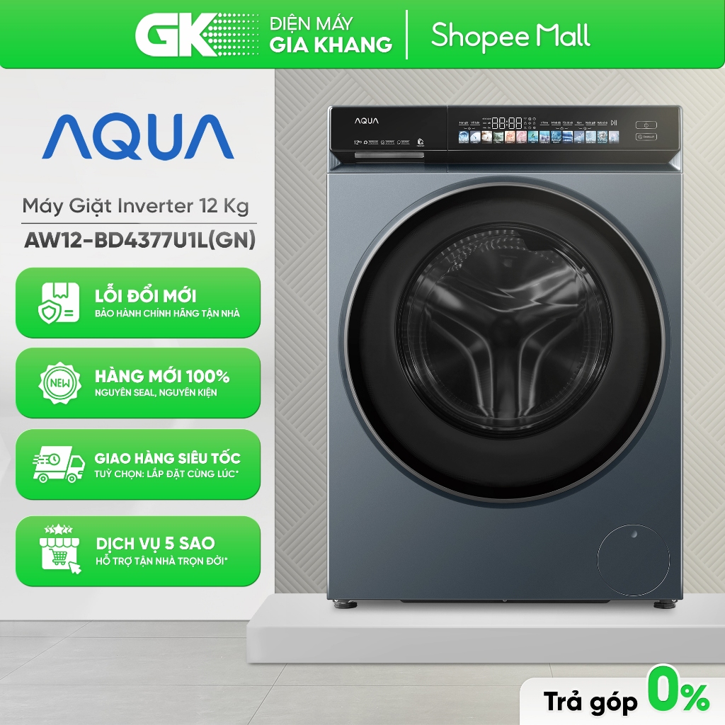 AW12-BD4377U1L(GN) - Máy giặt Aqua Inverter 12 kg AW12-BD4377U1L(GN) [Freeship HCM]