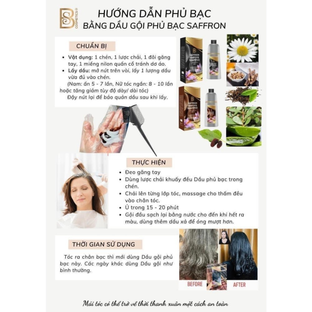 [TẶNG THANH LĂN-CHÍNH HÃNG] Dầu Gội Phủ Bạc Tóc Saffron, Dầu gội nhuộm tóc bạc, Dầu gội phủ bạc thảo mộc Hàn Quốc[TÂY Á]