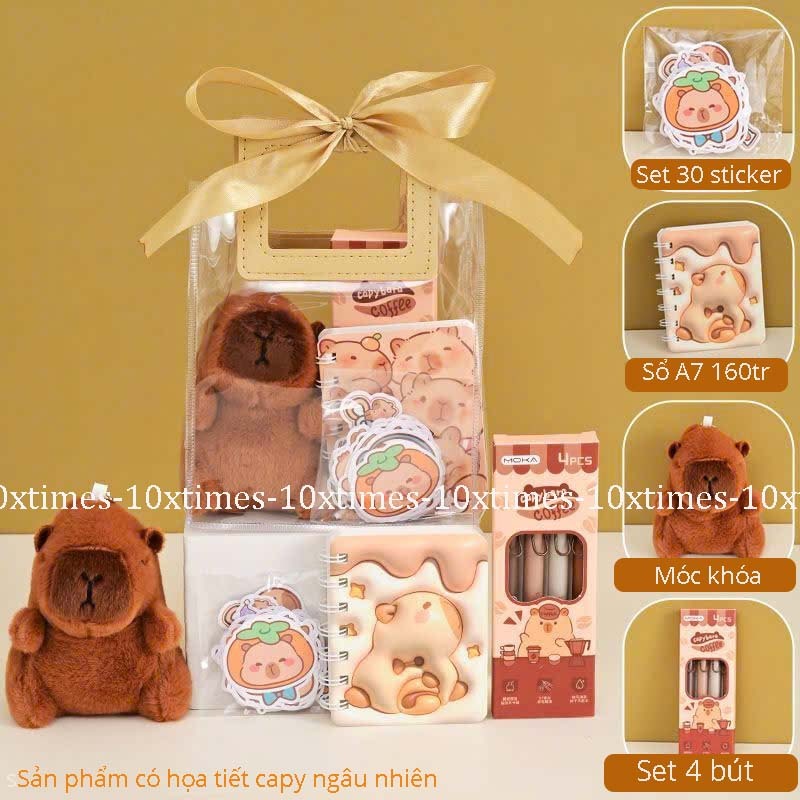 Set quà tặng Chuột lang Capybara tặng sinh nhật, valentine túi tote, cốc giữ nhiệt,. trung thu noel