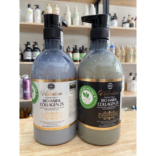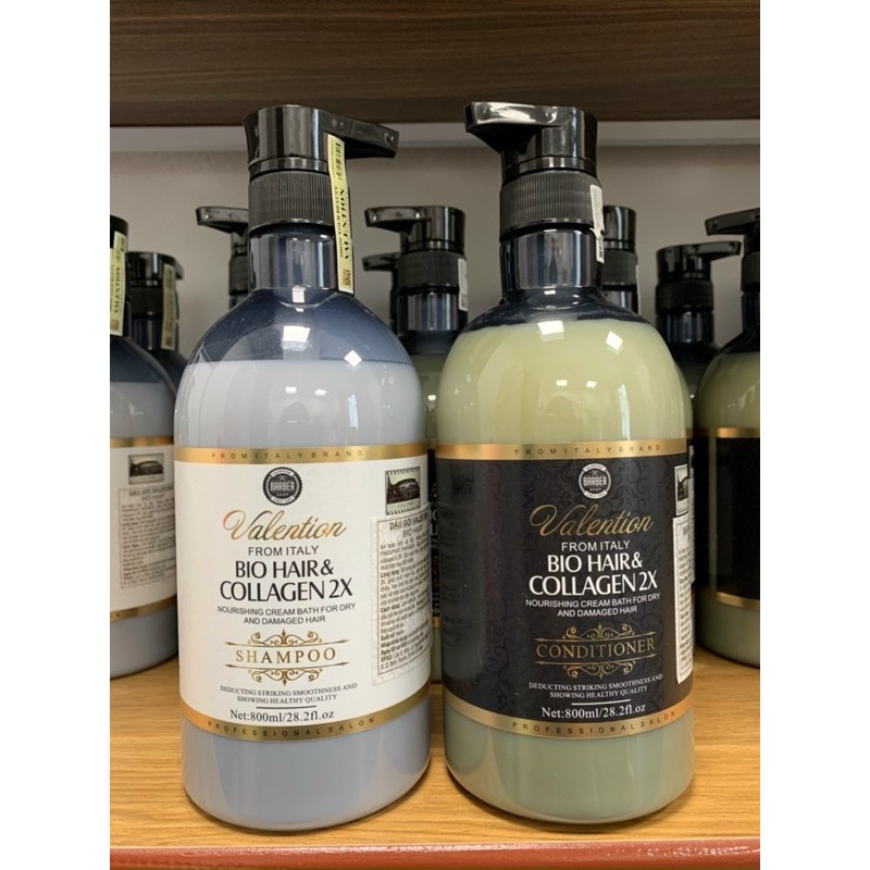 Dầu Gội Cặp Valention Bio Hair & Collagen 800ML, Bộ Gội Xả Giảm Tóc Gãy Rụng, Tái Tạo Cấu Trúc Tóc