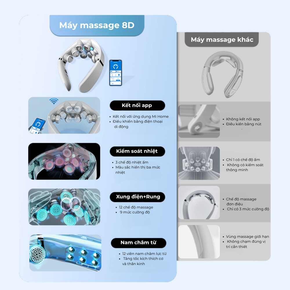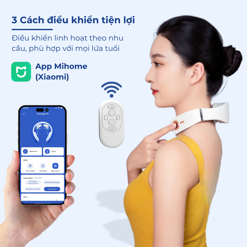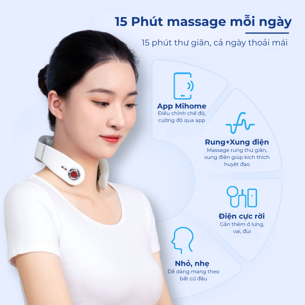 Máy massage cổ vai gáy 8D kết nối app Mihome, máy massage mini rung kết hợp xung điện Masaji