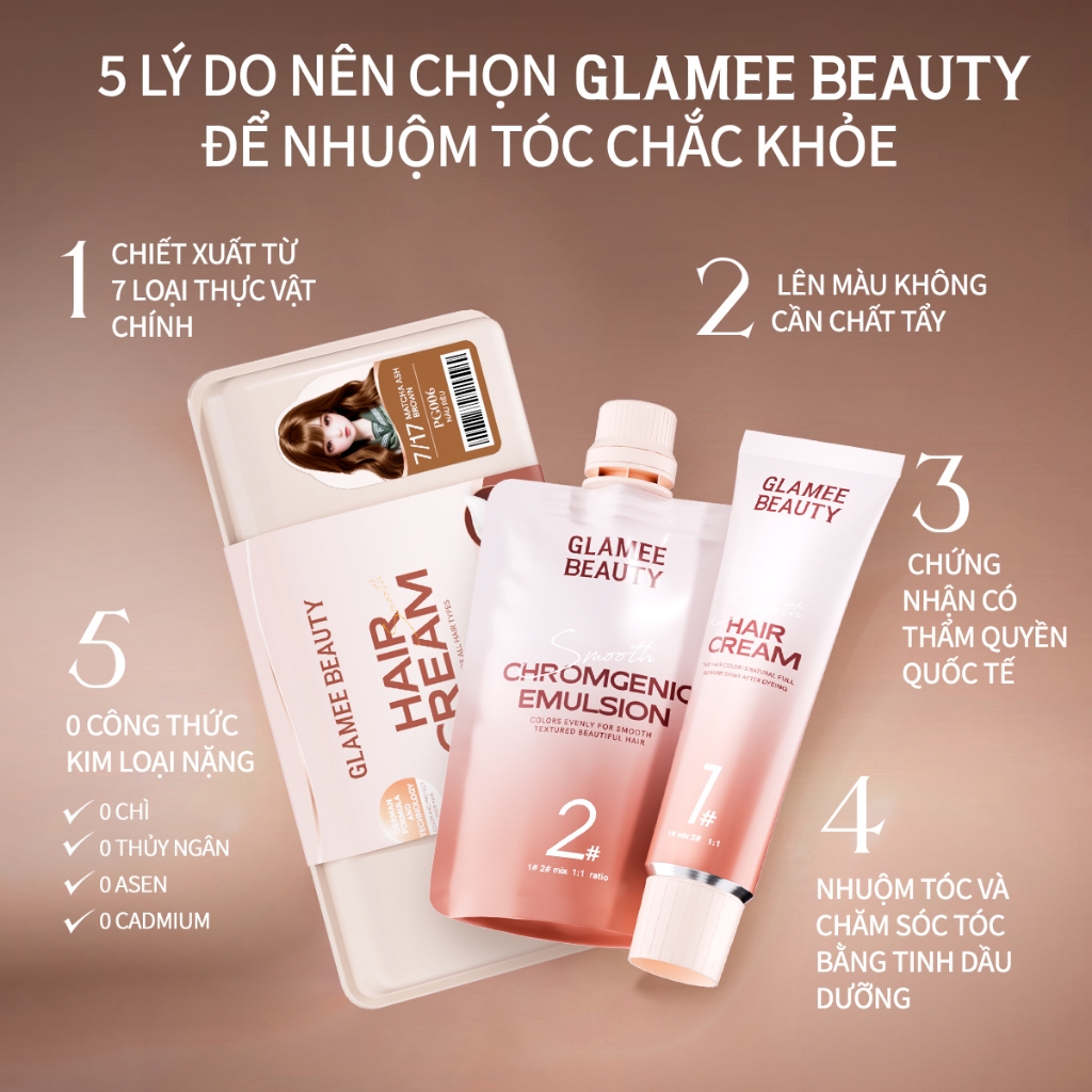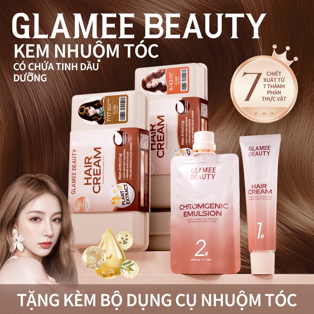 Glamee Beauty Thuốc Nhuộm Tóc Tại Nhà DIY Không Hư Tổn Nhuộm Tóc Dưỡng Phủ Bạc Tặng Bộ Dụng Cụ Màu