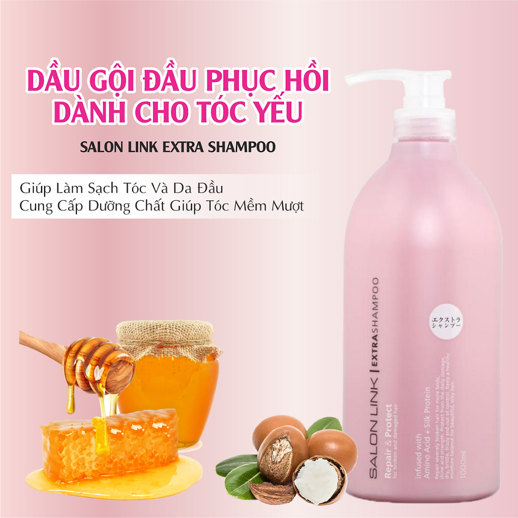 Set gội xả phục hồi tóc hư tổn Kumano Salon Link Extra Shampoo 1000ml