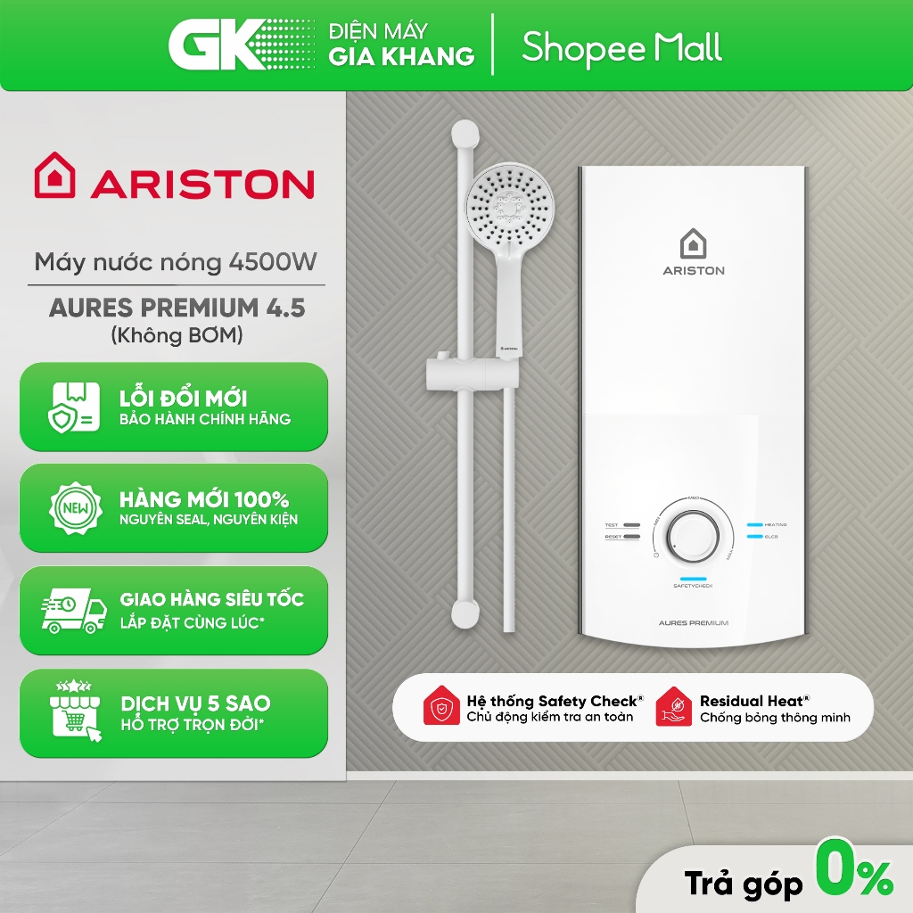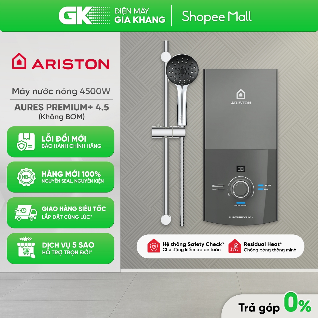 AURES PREMIUM 4.5 (Trắng) | AURES PREMIUM+ 4.5 (Đen Xám) - Máy Nước Nóng Ariston 4500W (KHÔNG BƠM) [Toàn Quốc]