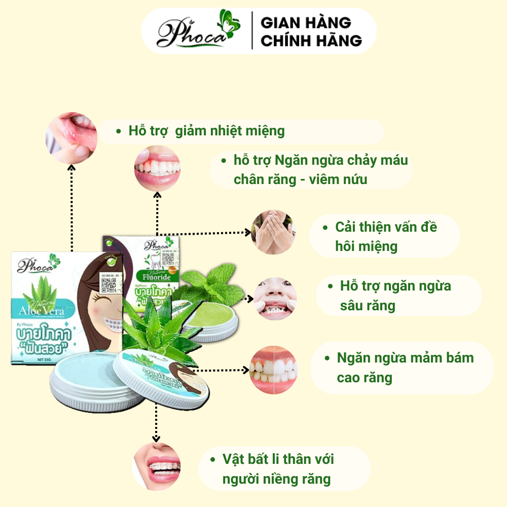kem đánh răng Thái Lan, Kem đánh răng Phoca, kem đánh răng thảo mộc, thơm miệng 25gr