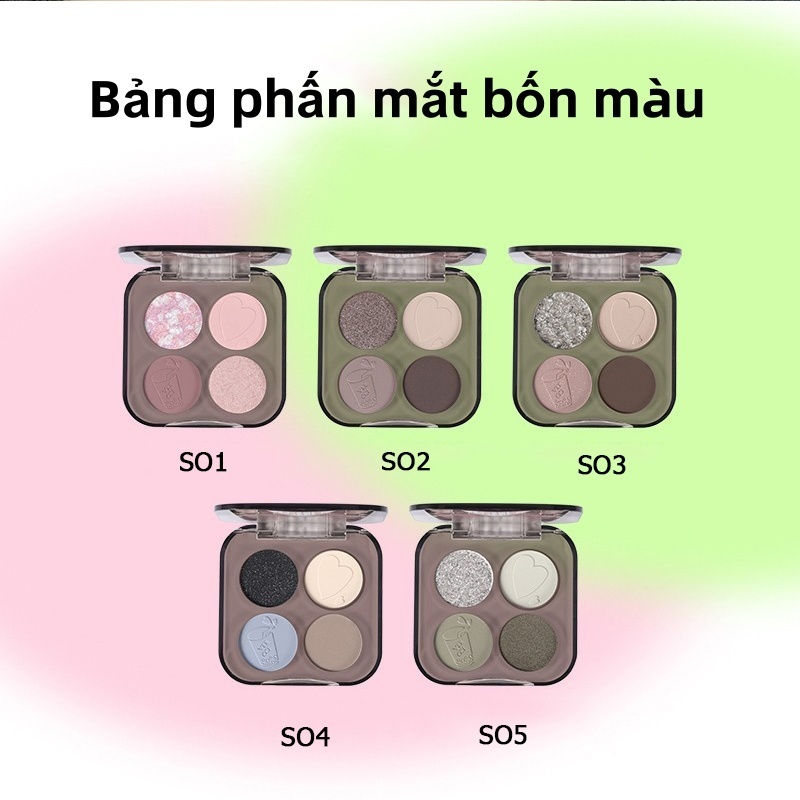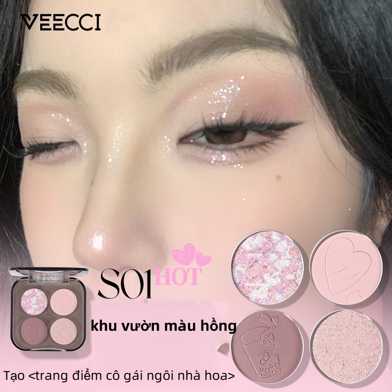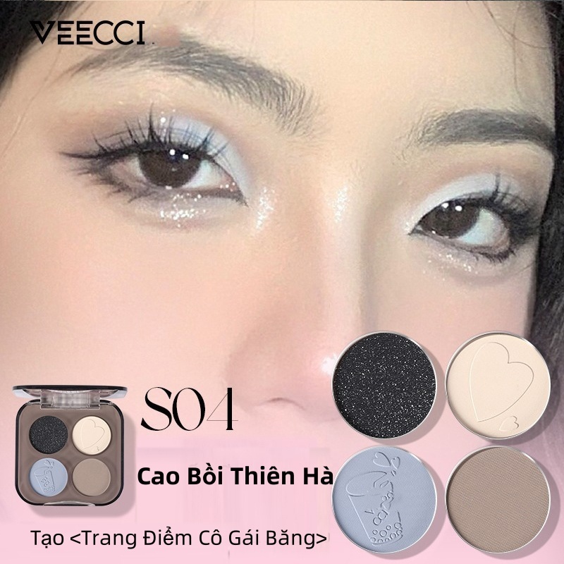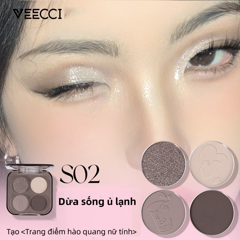 Bảng Phấn Mắt MINODERM VEECCI Bốn Màu Sắc Hiệu Ứng Lì, Ánh Nhũ Chống Nhòe Thời Trang 5.2g/ô