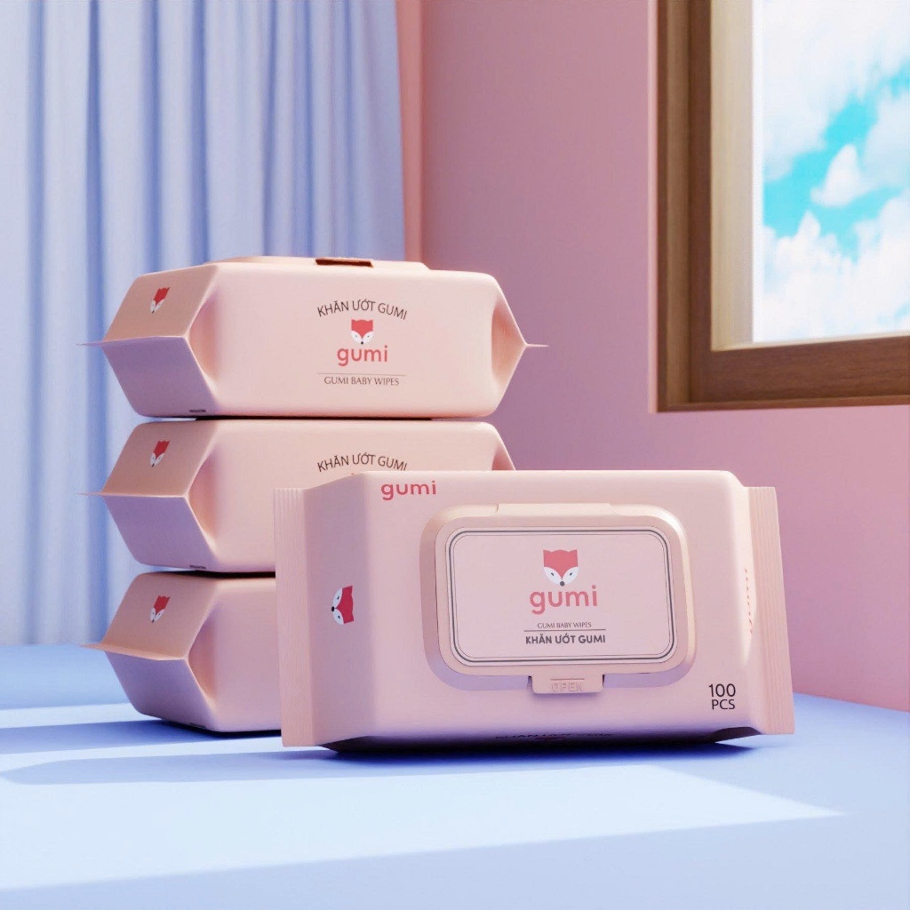 [ Thùng 10 ] Gói khăn uớt đa năng 80 tờ Gumi không cồn không parabens cao cấp , an toàn , tiện lợi