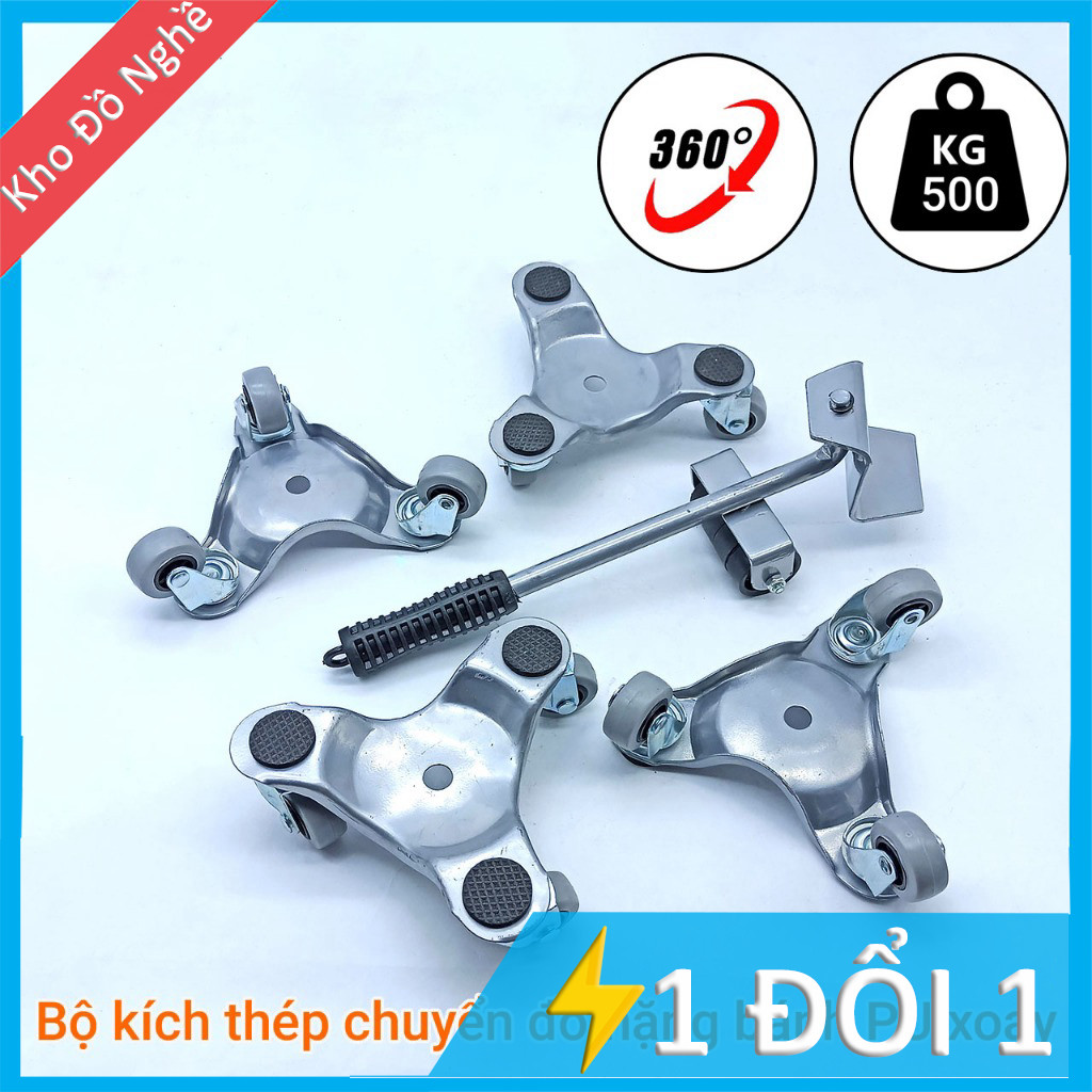 Bộ dụng cụ di chuyển đồ đạc tải trọng 500kg bằng thép bánh PU xoay 360 độ,nâng và di chuyển hàng hóa