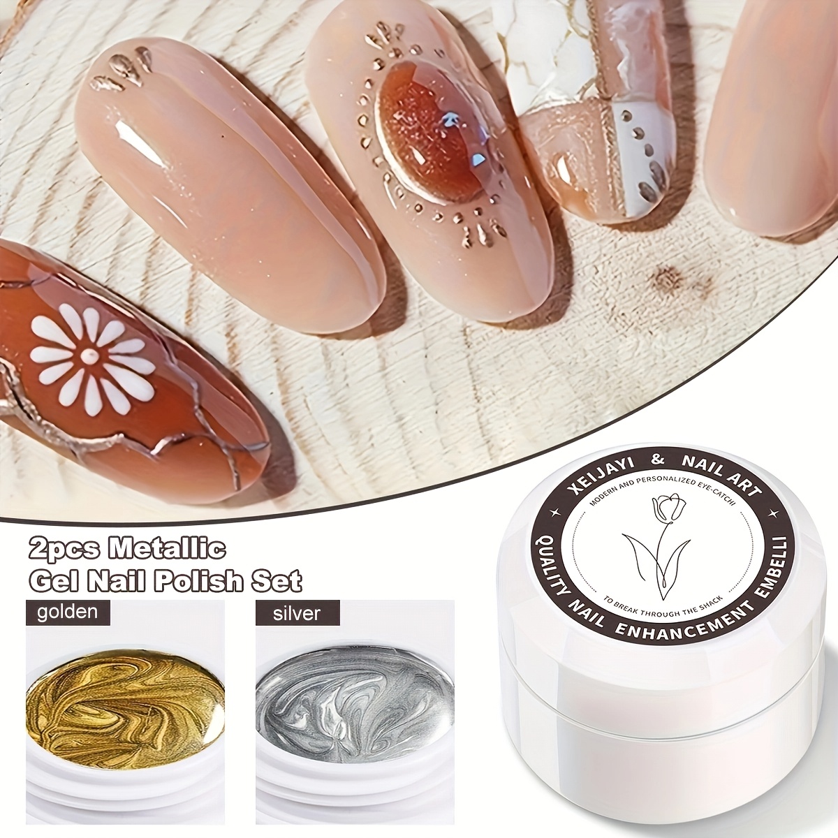 Xeijayi 2 Chiếc Kim Loại Sơn Móng Tay Gel Sơn Móng Tay Nghệ Thuật Sáng Tạo Đàn Hồi Kim Loại Sơn Keo Vẽ Tranh Vẽ Ba Lan Emboss UV Gel Điêu Khắc Thiết Kế, Hiệu Ứng Gương Ma Thuật