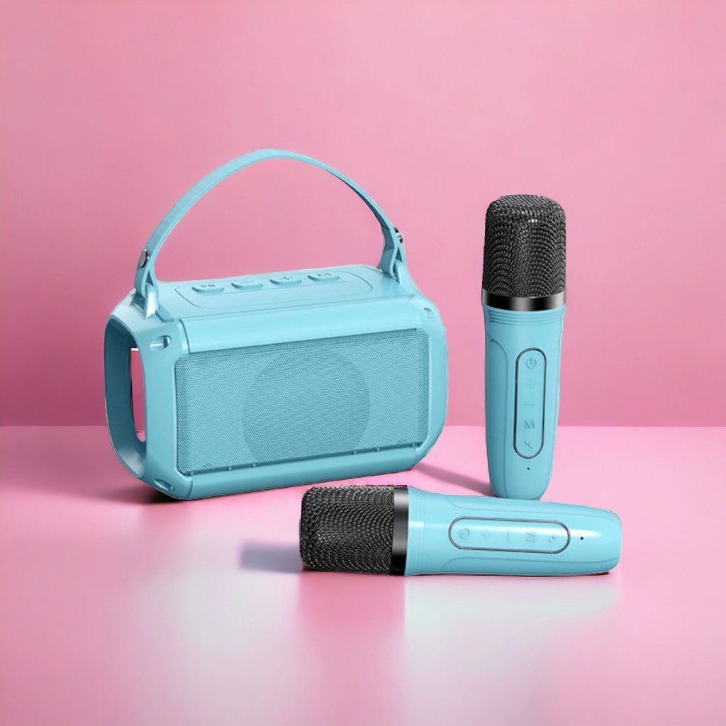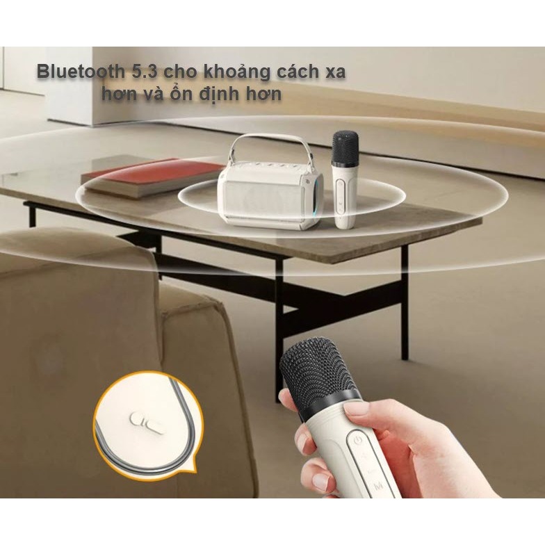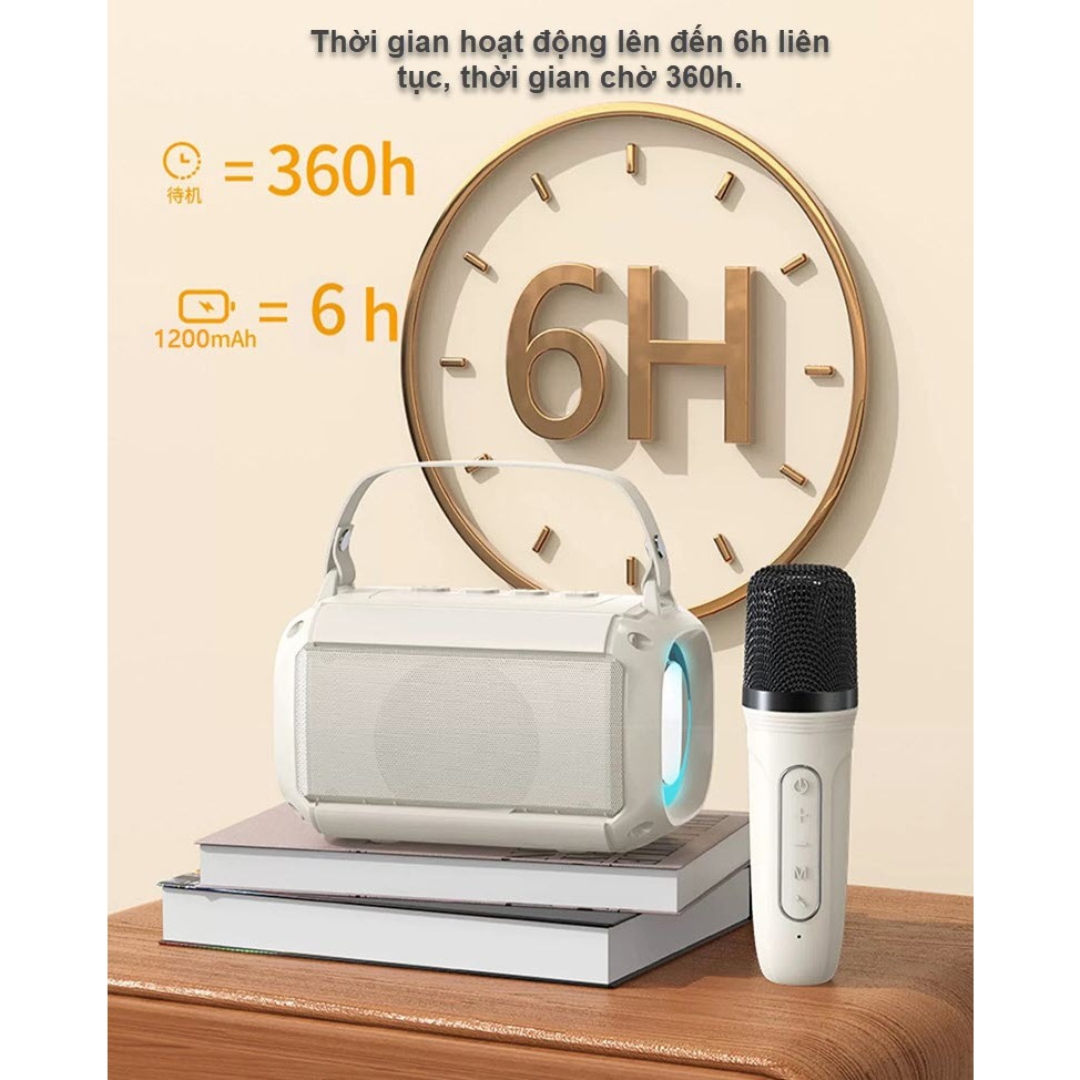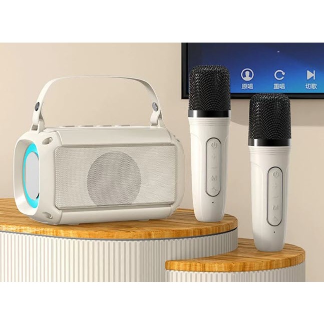 LOA BLUETOOTH KARAOKE kèm 2 Mic không dây nhỏ gọn với loa BASS kép mạnh mẽ, led RGB nháy theo nhạc