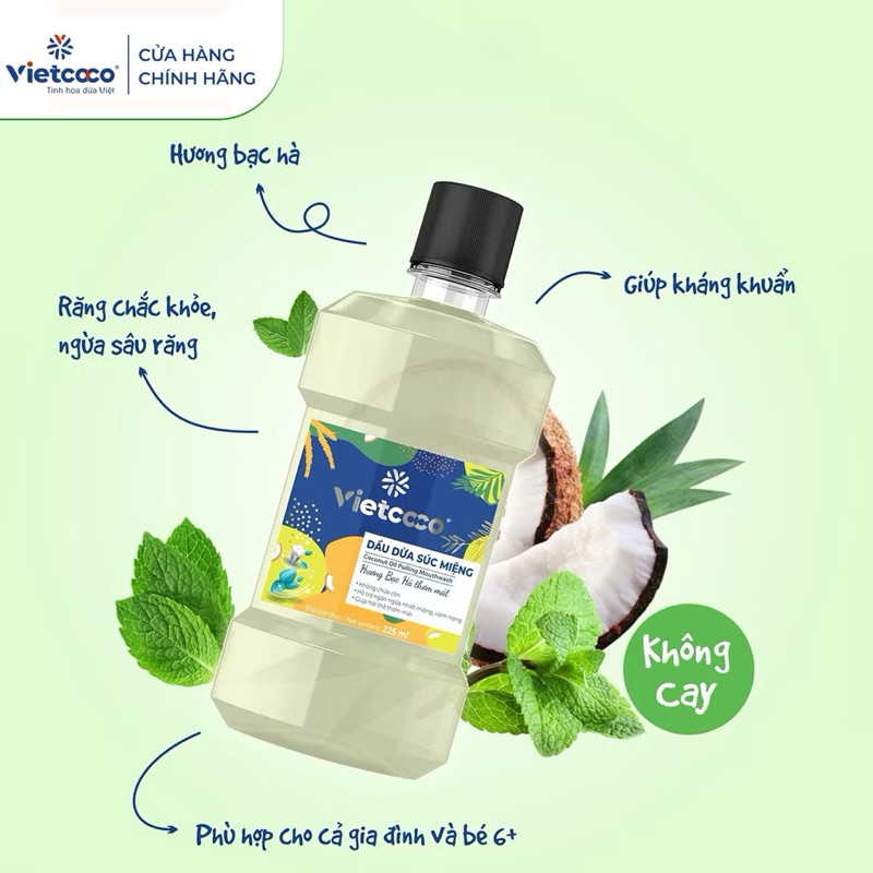 Dầu dừa SÚC MIỆNG Vietcoco Hương Bạc Hà thơm mát chai 225ml