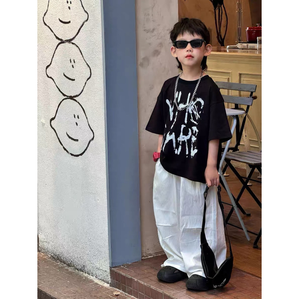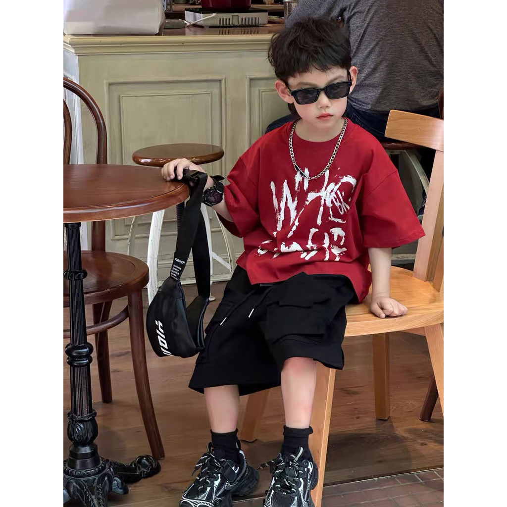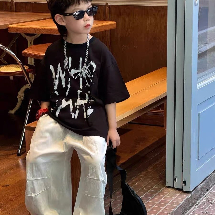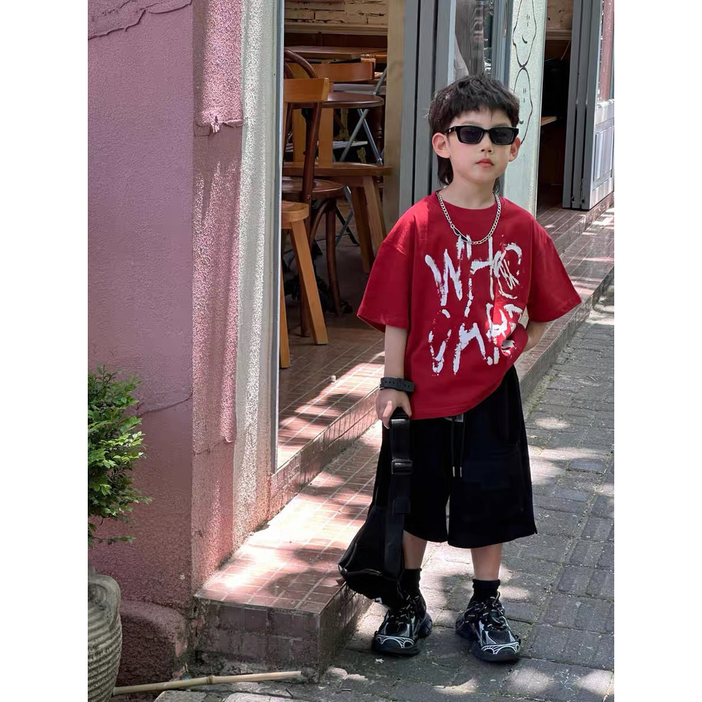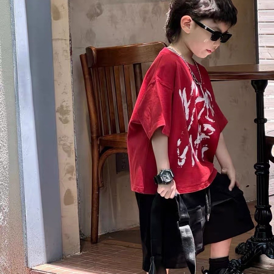 Áo T-shirt mùa hè bé trai áo ngắn tay chữ cái bé trai