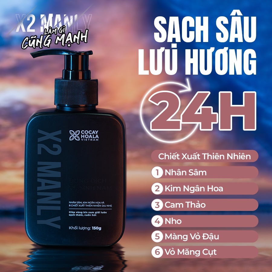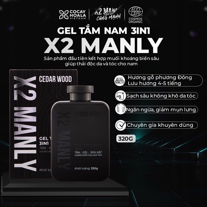 Sữa Tắm Gội Nam 3in1 X2 MANLY Dung Dịch Vệ Sinh Nam Cao Cấp X2 MANLY COCAYHOALA VIETNAM Chính Hãng