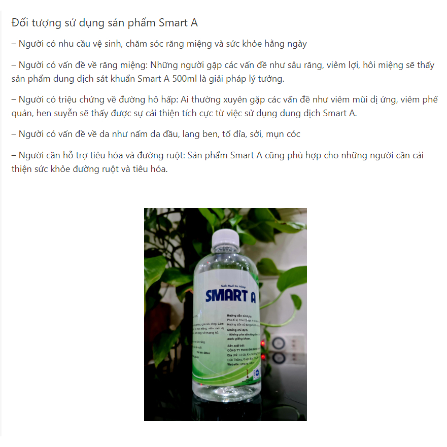 Hộp 5 và 10 chai Nước muối súc miệng Smart A 500ml - Nước anolyte diệt khuẩn tới 99,9% an toàn lành tính