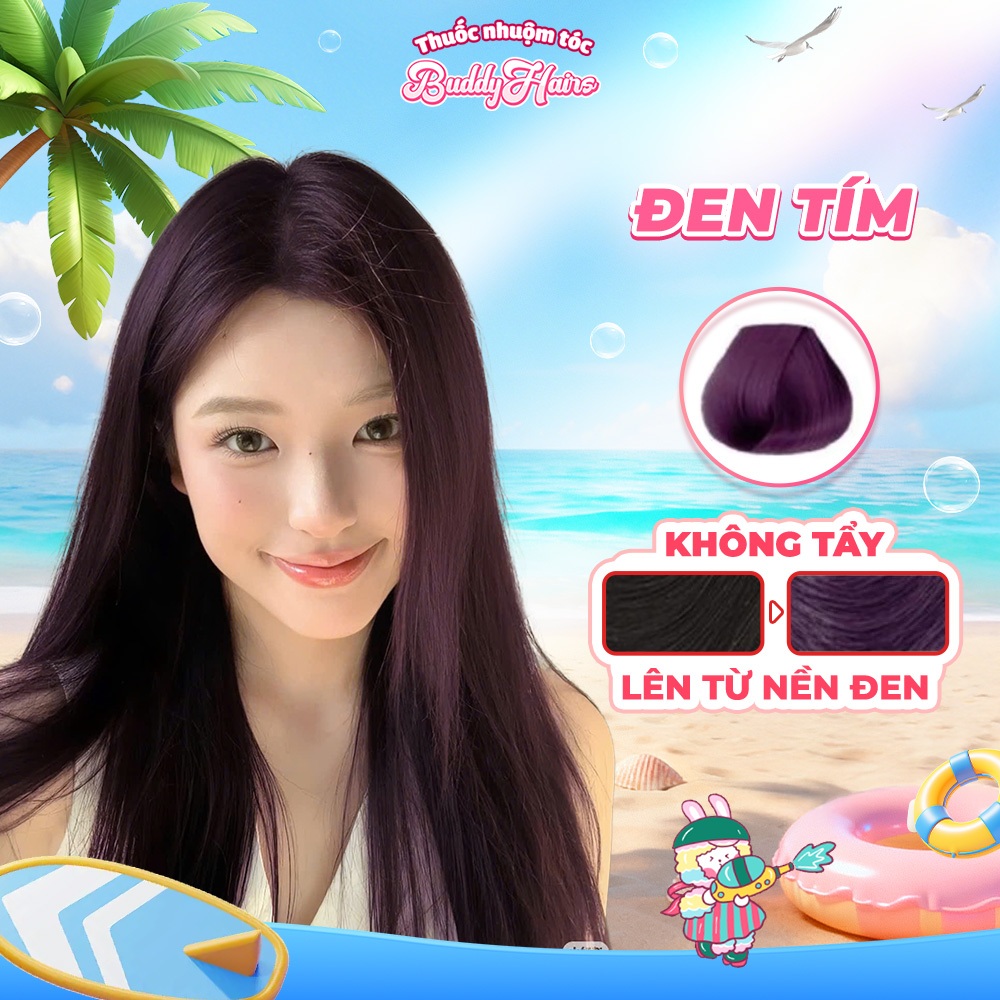 Thuốc nhuộm tóc màu ĐEN TÍM, TÍM ĐEN thuốc nhuộm tóc không cần tẩy, kem nhuộm tóc tại nhà Buddyhairs tặng kèm dụng cụ "